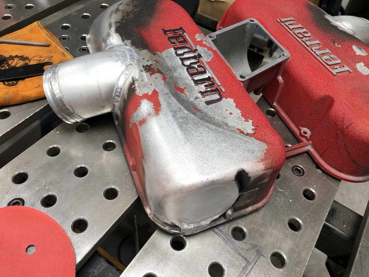 Files + angle grinders + d/a + a bit of time and the plenum patches are nearly ready. Even though this end is entirely hidden once it's in the car - all that's visible are the top and side radii - a few spots still need a bit of tidying up.