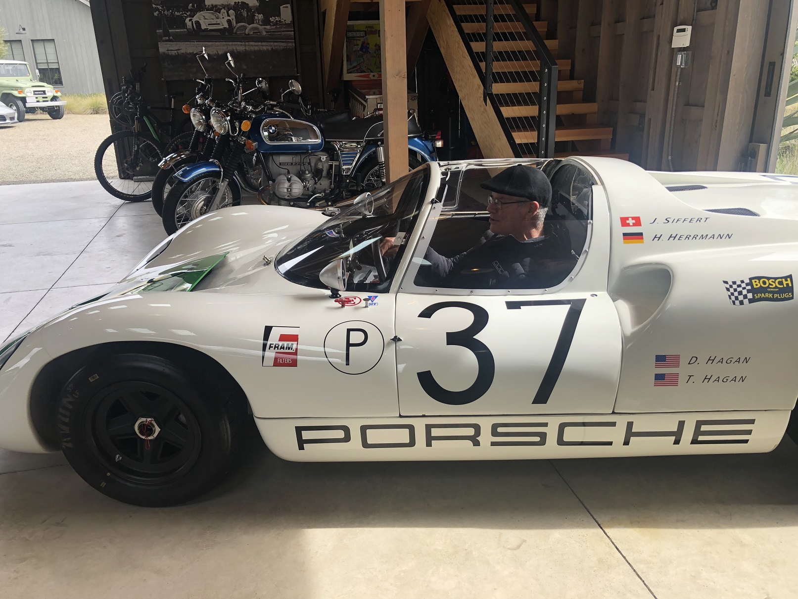 While I thought the Singer DLS would be the highlight of my day, it turns out it was when the owner of the 910 said, "You want to sit in it?". Uh... Yes! Yes I do! That 910 was 2nd in class/4th overall at Sebring in '67. Quite a day... Attached thumbnail(s) |