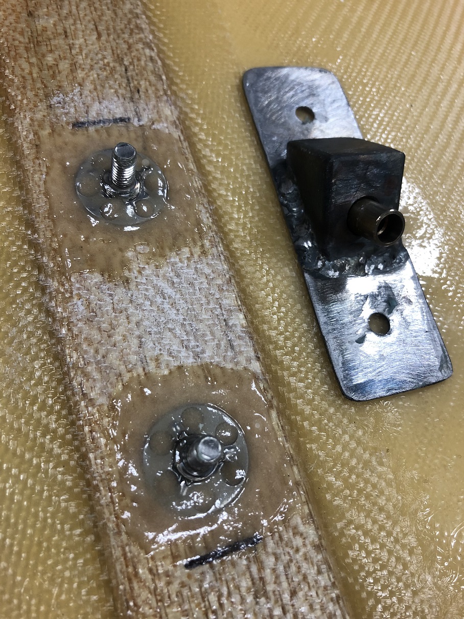 I'm a fan of a prop system that "locks" in place and prevents the prop from falling out of place in the event of a wind gust, being bumped, etc. So the first thing I did is whip up a bracket that has a receiver for a pit pin. Next, I sourced some M6 studs that are specifically designed to be bonded on - note the oversized, perforated base. Then I mixed high density adhesive filler into epoxy resin, positioned the studs and let things cure. Attached thumbnail(s) Attached image(s)
