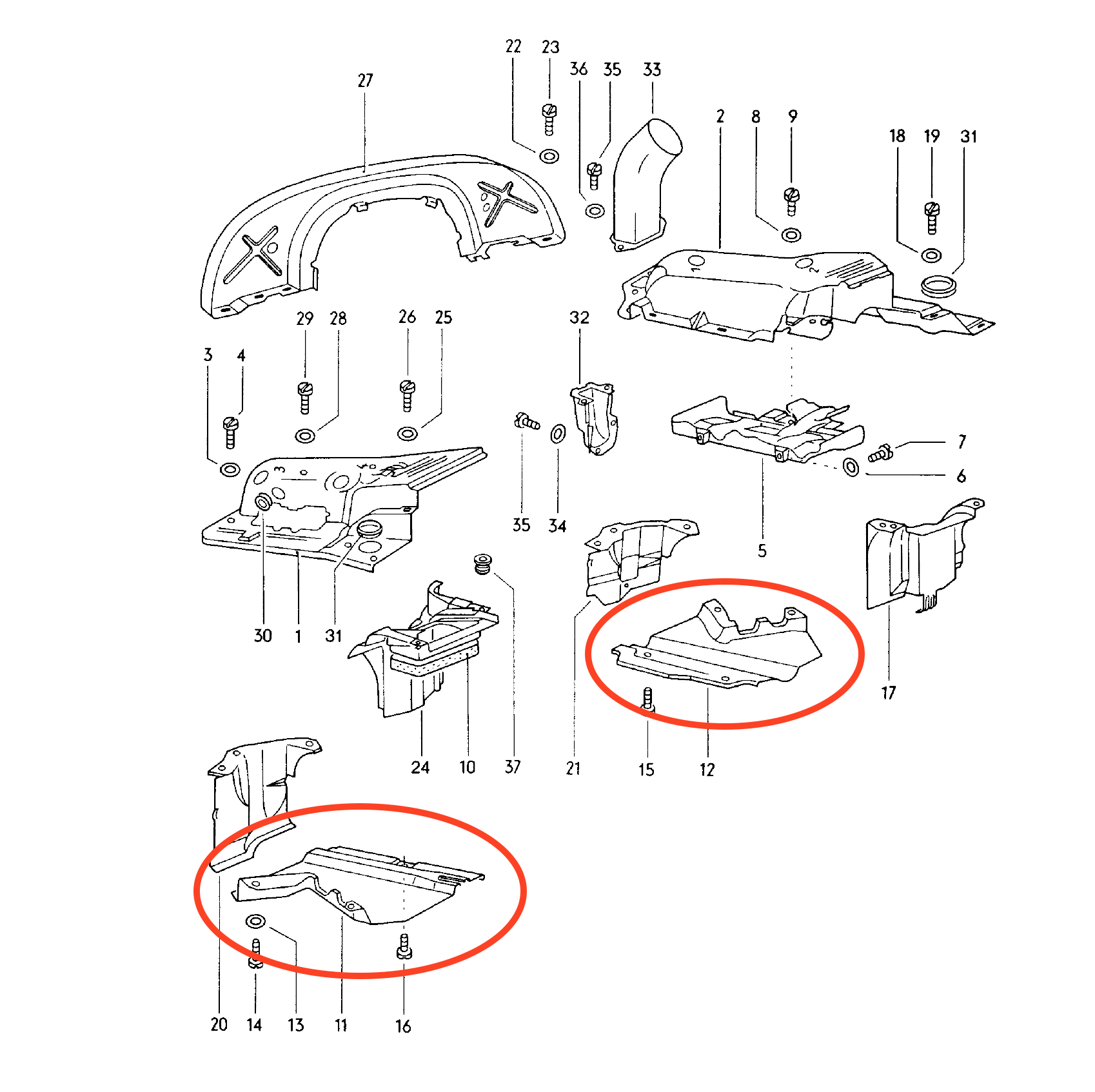 Yep, Porsche wasted a lot of money on parts that the cars DID NOT need. (IMG:style_emoticons/default/poke.gif) yes and no. i agree with dr. 914. they stop the cables getting roasted. or at least that portion of the cables. (IMG:style_emoticons/default/smile.gif) i think they were an attempt by porsche to try and get the spent cooling air from out under the car by trying to squirt it towards the rear. conventional rear engined VWs did not have the problem. the heated air did not pool under the car, its just squirted straight out near the bumper and into the open air. the hot air pools under the 914 and gets trapped - when the car is at standstill. with the warm air guides it pools under the trunk and gets trapped in a big bubble there. without the guides it can pool up in the front section and add to the original fuel pump vaporization woes, though to some extent that is also due to the air exiting the heat exhanger valves there. all in all, my honest view is it was an attempt to solve a problem that they never really fully solved? the engine being so central in the car. with the car on the move its academic whether you have them or not. except to preserve the clutch cable and speedo cable. which you can also do with an insulation wrap. the important guides are the ones higher up the direct air around the cylinders and fitted closer to the cooling fins. but there is nothing wrong with being a purist and having it all set up factory perfect. i have not had a set on mine for 30+ years. but now that dr. 914 is making that hard to get one as a reproduction i might just get a set now and fit them. (IMG:style_emoticons/default/beerchug.gif) will report on whether it really does make any difference when stuck in traffic. in australia. somehow i doubt it. (IMG:style_emoticons/default/beer.gif) |