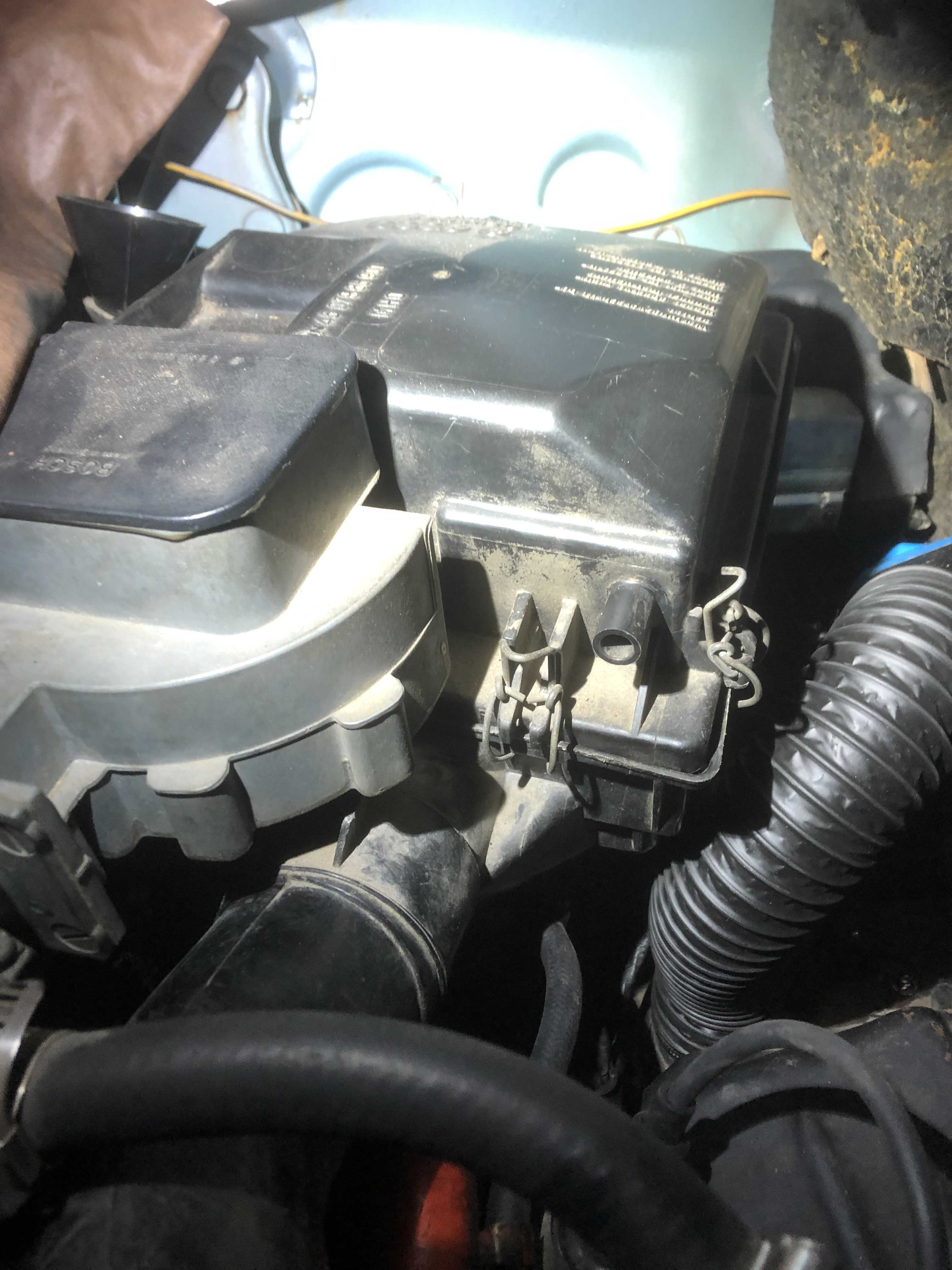 frank - probably your whole charcoal cannister set up is missing? what is the build date on the car? it would be sucking air above the filter (and dirt/dust) through that port. if the vapor emission equip is missing i would plug that port on the air cleaner if i was you. |
