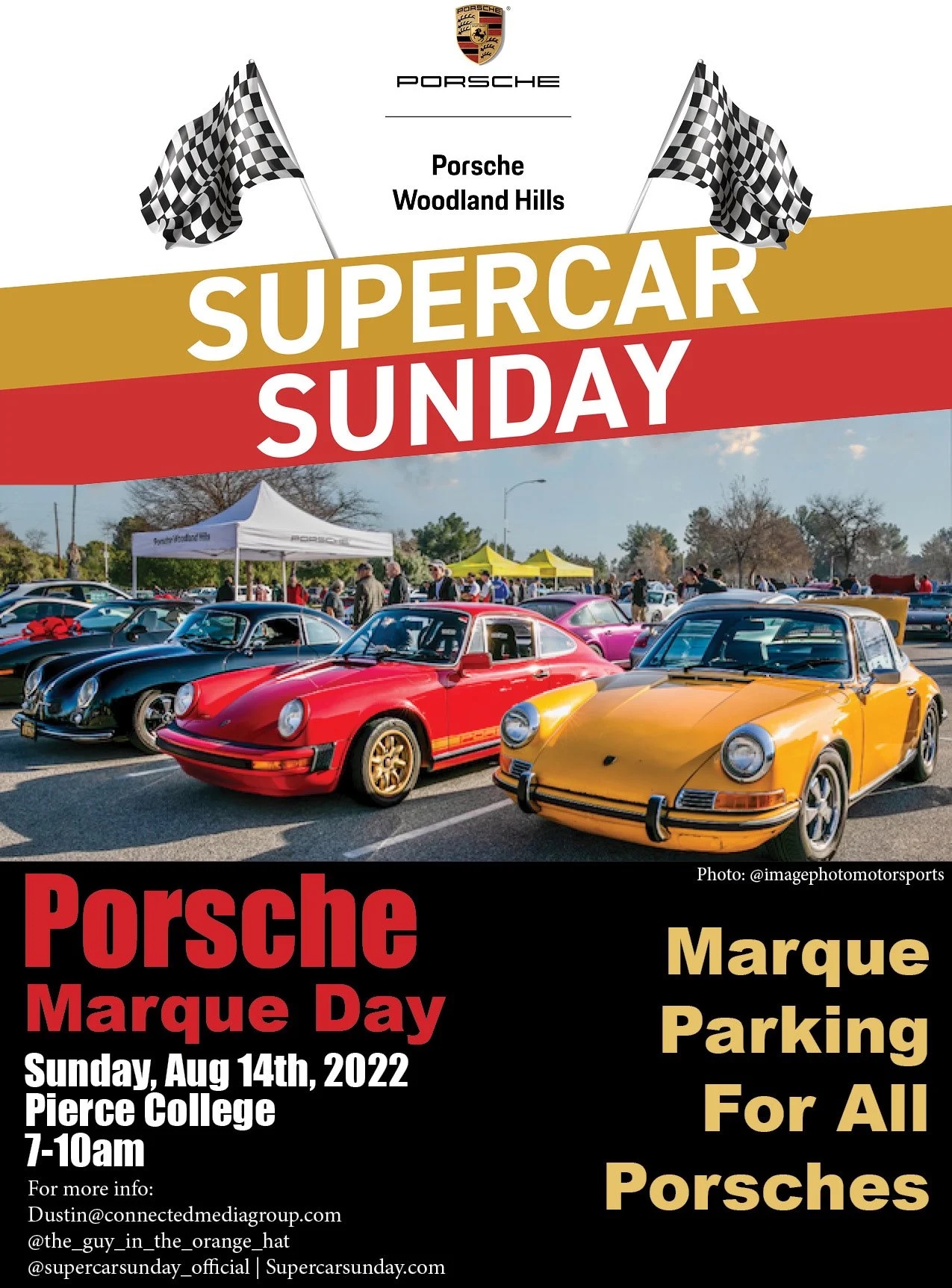 Join us for Supercar Sunday Porsche Marque Day at Pierce College.