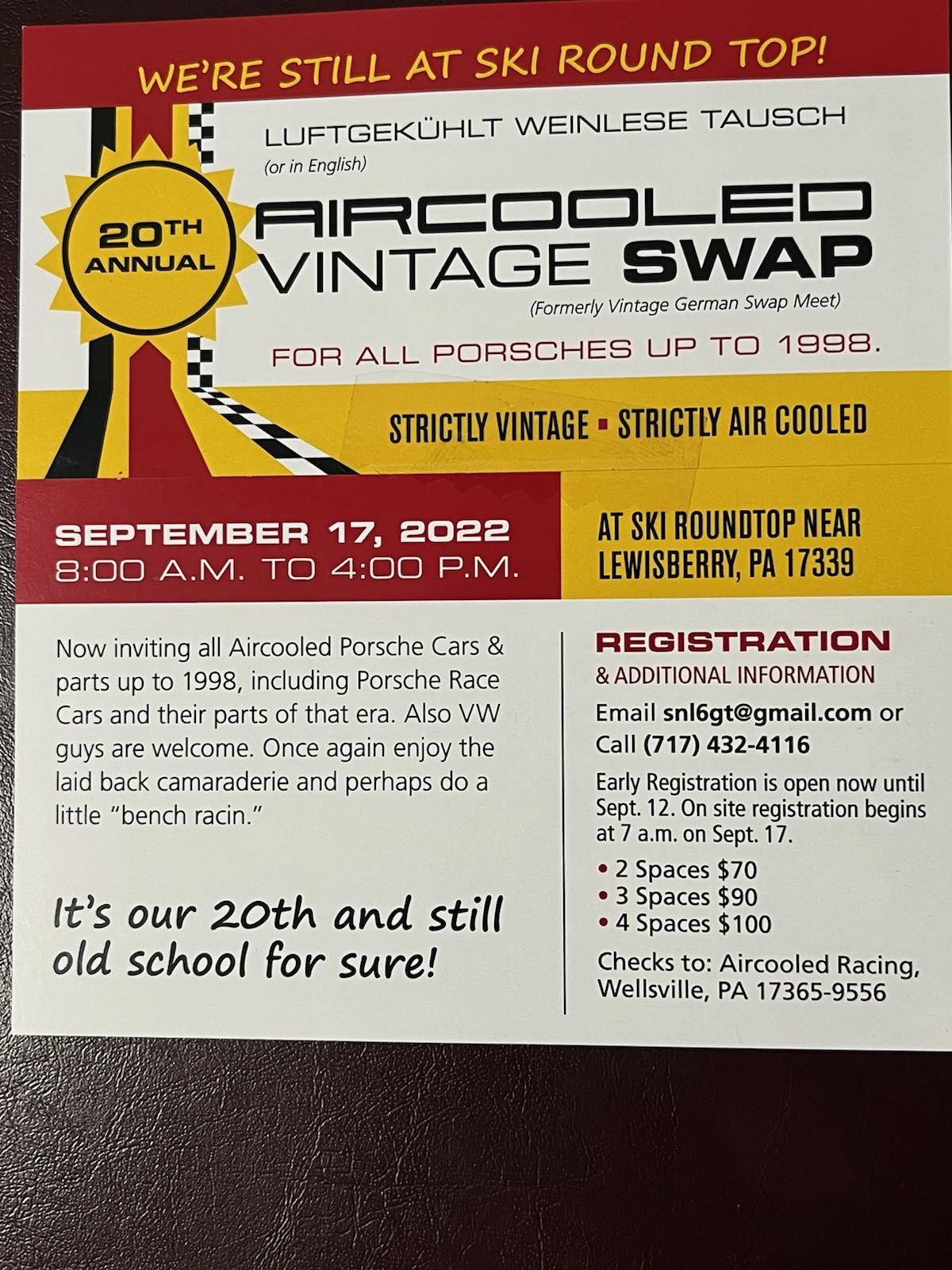 Oh, no! Going to be on vacation! The Air Cooled Gathering in Flanders, NJ is about the same time, too.