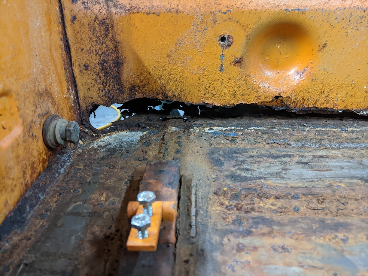 I'm not sure how to approach this. Do I need to strip all this and go on rotisserie? Or is it feasible to cut and patch this from the top The driver side floor is bondo (or something). I'm not sure what is holding the seat mounts. The passenger side seat mount right is about broken loose. There's also holes past the transverse strut into the battery area. The longs seem ok from what I can see. Can I get the sill covers off without taking the fenders off? I was worried I drill out all the rivets to figure one hidden under the fender. Any good tool recommendations for rust removal? I was thinking maybe I can get away with with https://www.restoration-design.com/store/product/PP345BR and a https://www.restoration-design.com/store/PR...duct_Code=PP325 and the seat brakets and patch the holes. ![]() |
