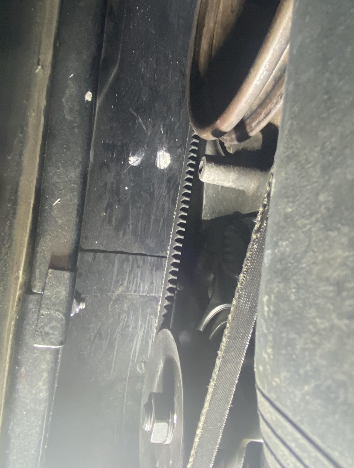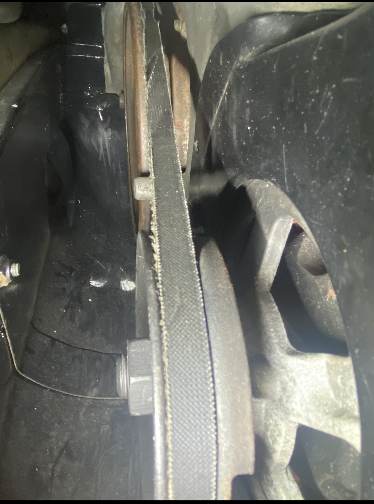 I can see pulleys are not parallel. As well as measure. The small pulley is too far to the front. And the small pulley doesn’t look like the one on eBay, which doesn’t have the notches. (I am trying a looser belt, less tension, to see if it stays on longer) Anyone have a photo of their pulley? In an engine sitting in their garage? |
