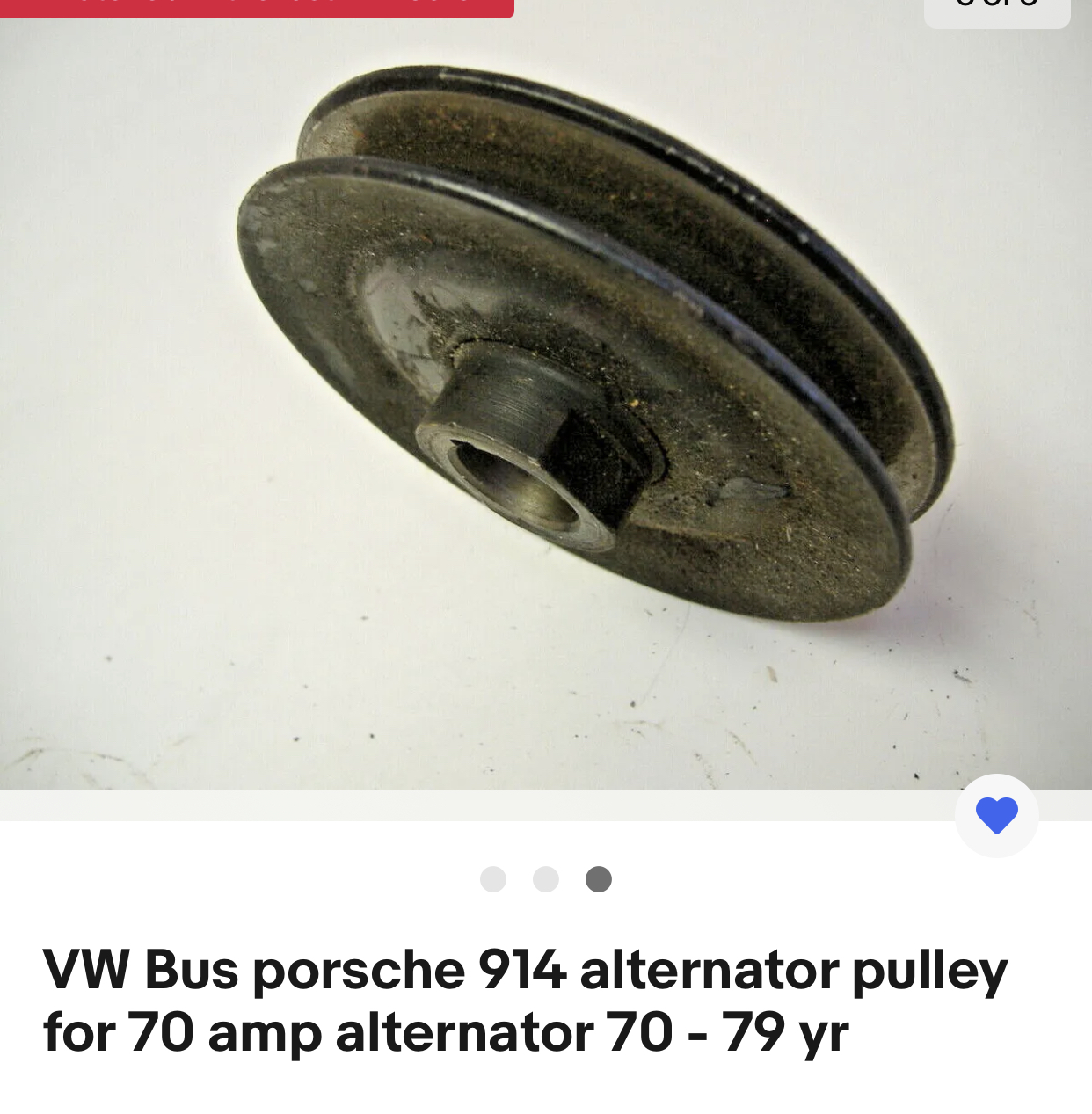 This is my car, with the old belt for now. I can see pulleys are not parallel. As well as measure. The small pulley is too far to the front. And the small pulley doesn’t look like the one on eBay, which doesn’t have the notches. (I am trying a looser belt, less tension, to see if it stays on longer) Anyone have a photo of their pulley? In an engine sitting in their garage? That pulley is on backwards. The cut outs go towards the outside (used to hold the pulley when tightening it). |