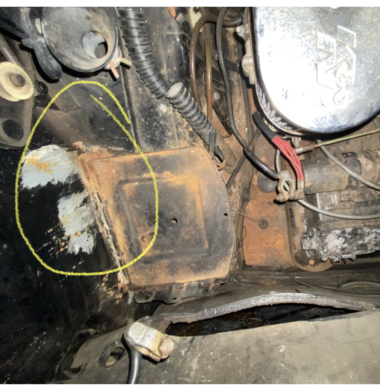 Kelty, If you can, take many more photos. I’m intrigued by historical black 1974 & also LE photos. Scott. And, in a few places, it seems like marathon blue metallic under the black. As seen in these photos. My guess is that is por-15 in silver. Look at the brush stroke edge. Yes someone needs to put eyes on this car. I think this is a factory Bk car. Marathon blue metallic is my favorite color by the way Bob B |