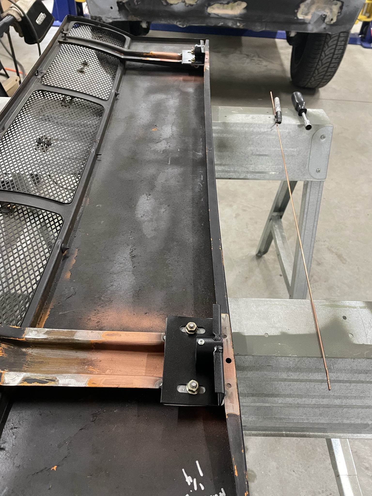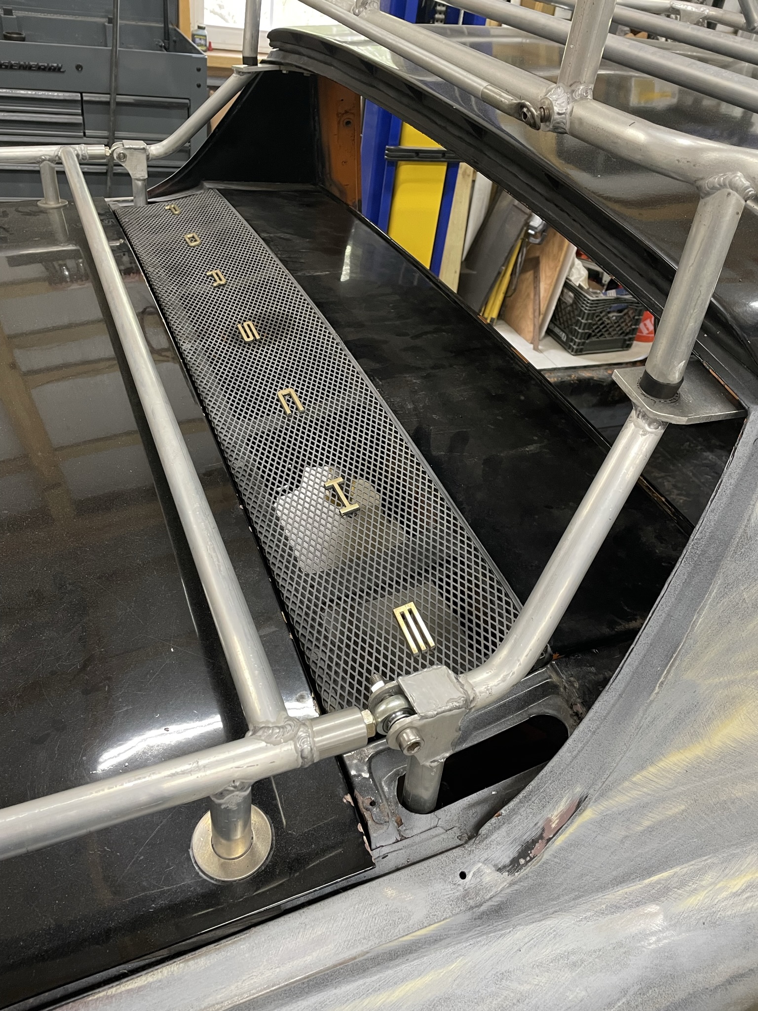 Nice. I was thinking along those same lines for my catch on my reverse tilt trunk but there was too much angle and distance needed from pin engagement to seating. Do you have to have the trunk open to get the engine lid off? Either way, I love watching your engineering of all these clever designs. Keep up the awesome work. (IMG:style_emoticons/default/sawzall-smiley.gif) (IMG:style_emoticons/default/smash.gif) (IMG:style_emoticons/default/welder.gif) Thank you! I angled the pins on the firewall so it will come up as it slides back. I can remove/install without opening the trunk lid. It didn’t take much angle to allow me to clear the trunk lid. I thought this was going to be more of a problem and had already been thinking of pivoting receivers if this didn’t workout, but thankfully I was able to keep it simple. I retired this year and I’m just having fun with the fab aspects of this project…..it’s nice to finally have time. |
