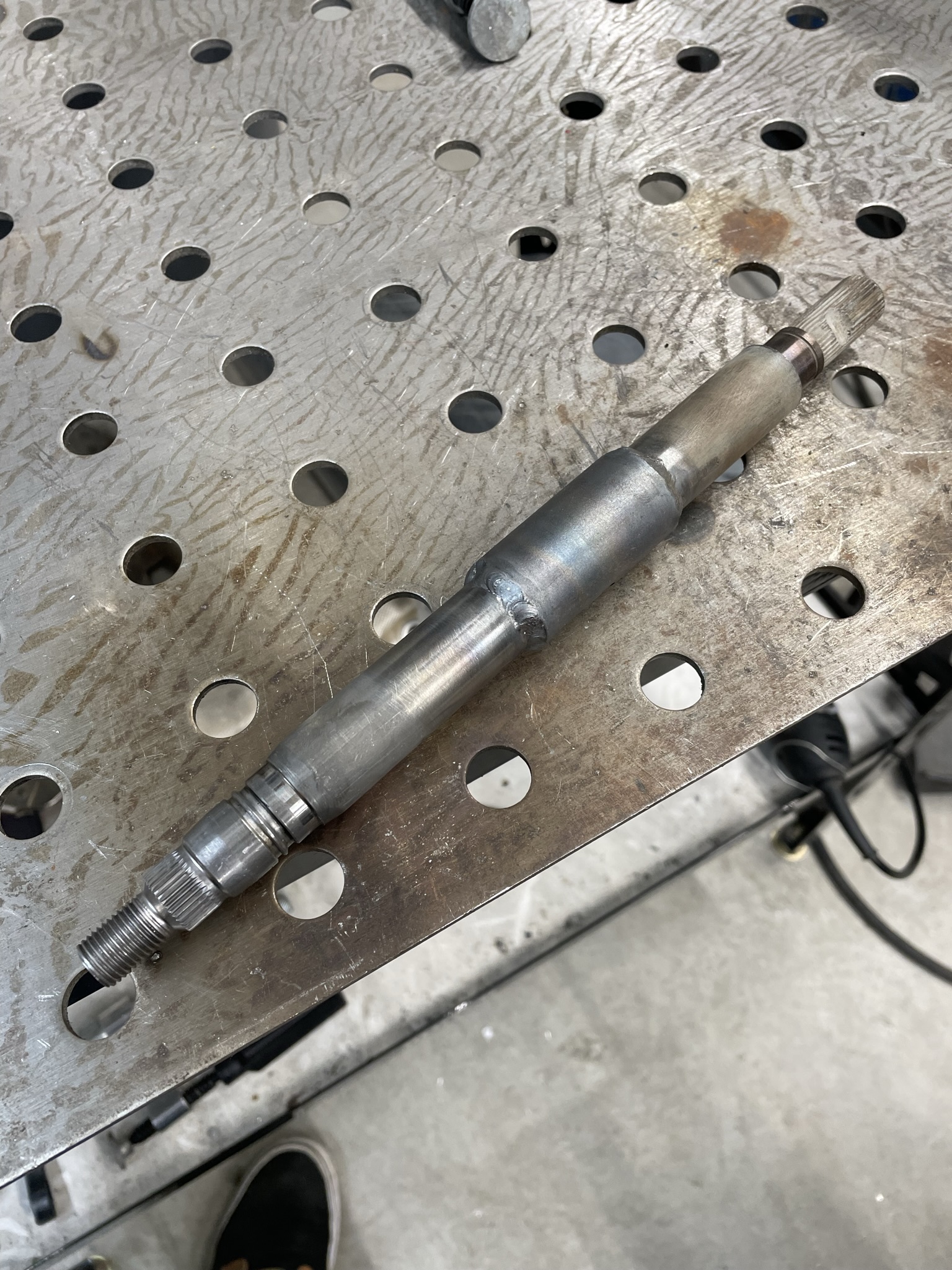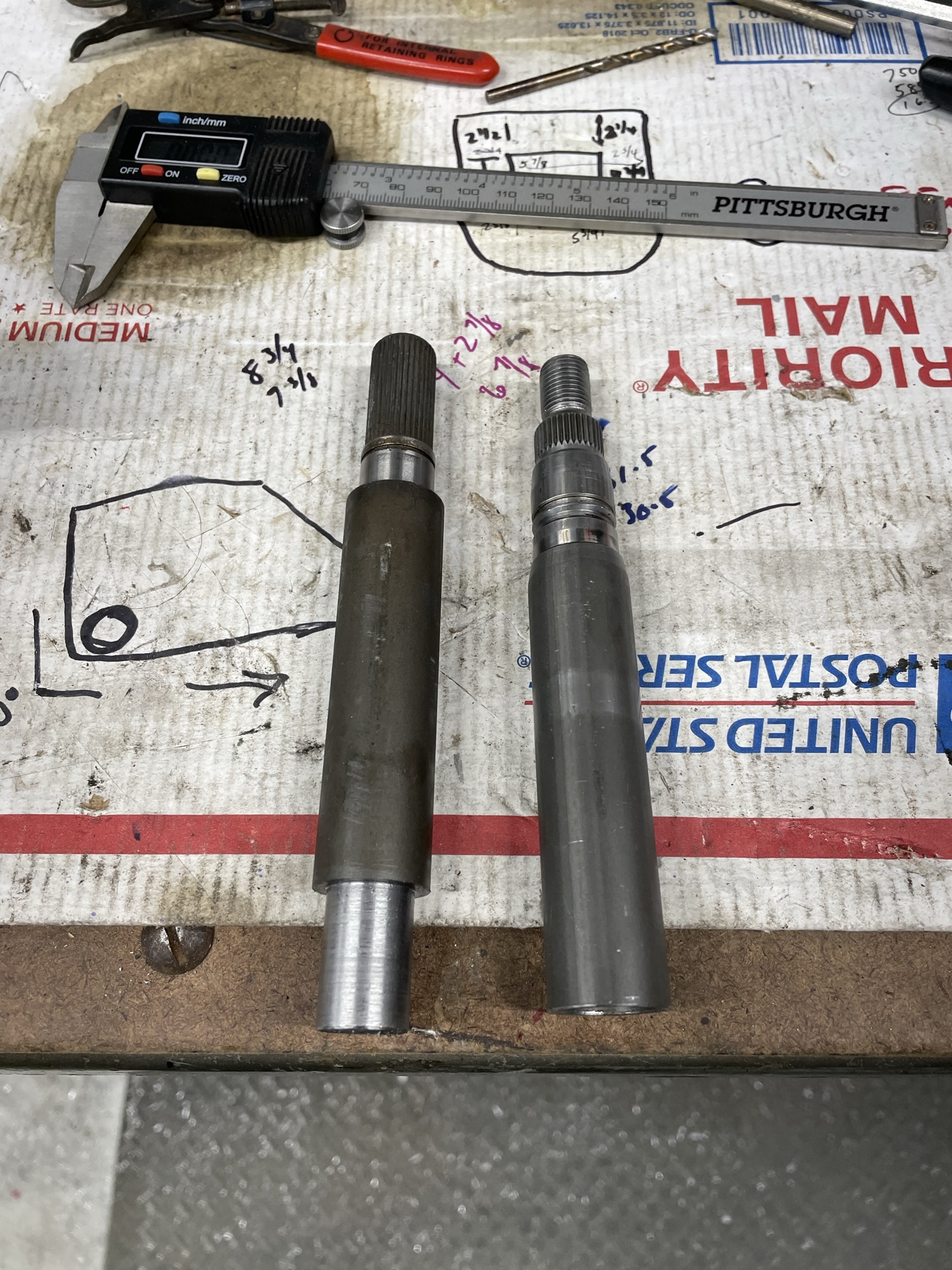 To support this I had to make a “Porsuaru” steering column. I used the outer portion of the Subaru column and the inner portion of the 914 column and, after determining the correct length, welded them together. Next was making a Porsuaru steering shaft. Same concept, use the 914 bottom and Subaru top. The Suby shaft is hollow and the 914 solid. Once I determined the exact length I machined the 914 shaft to fit into the Suby shaft to ensue good alignment. I welded the two shafts together, and for extra insurance, I welded a collar over the joint. The length is a little critical in that the shaft is encapsulated between snap rings at each end(since 914 snap ring is at bottom and Suby is at the top. So now there’s rings at each end). Attached thumbnail(s) |