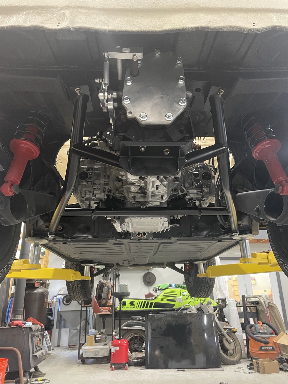 Now I can drop my engine/trans in….progress now that paint is cured. |
