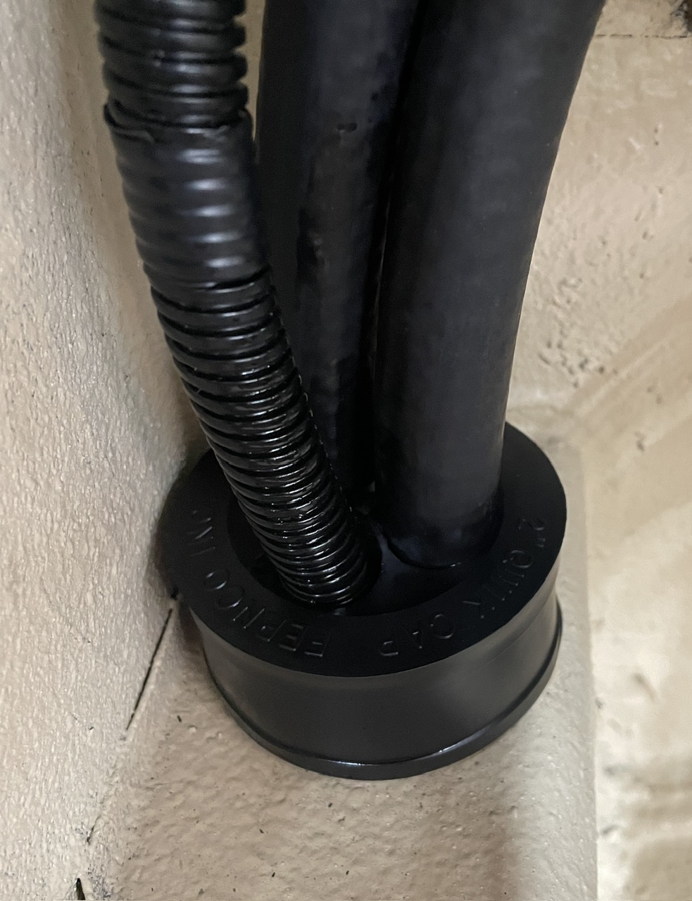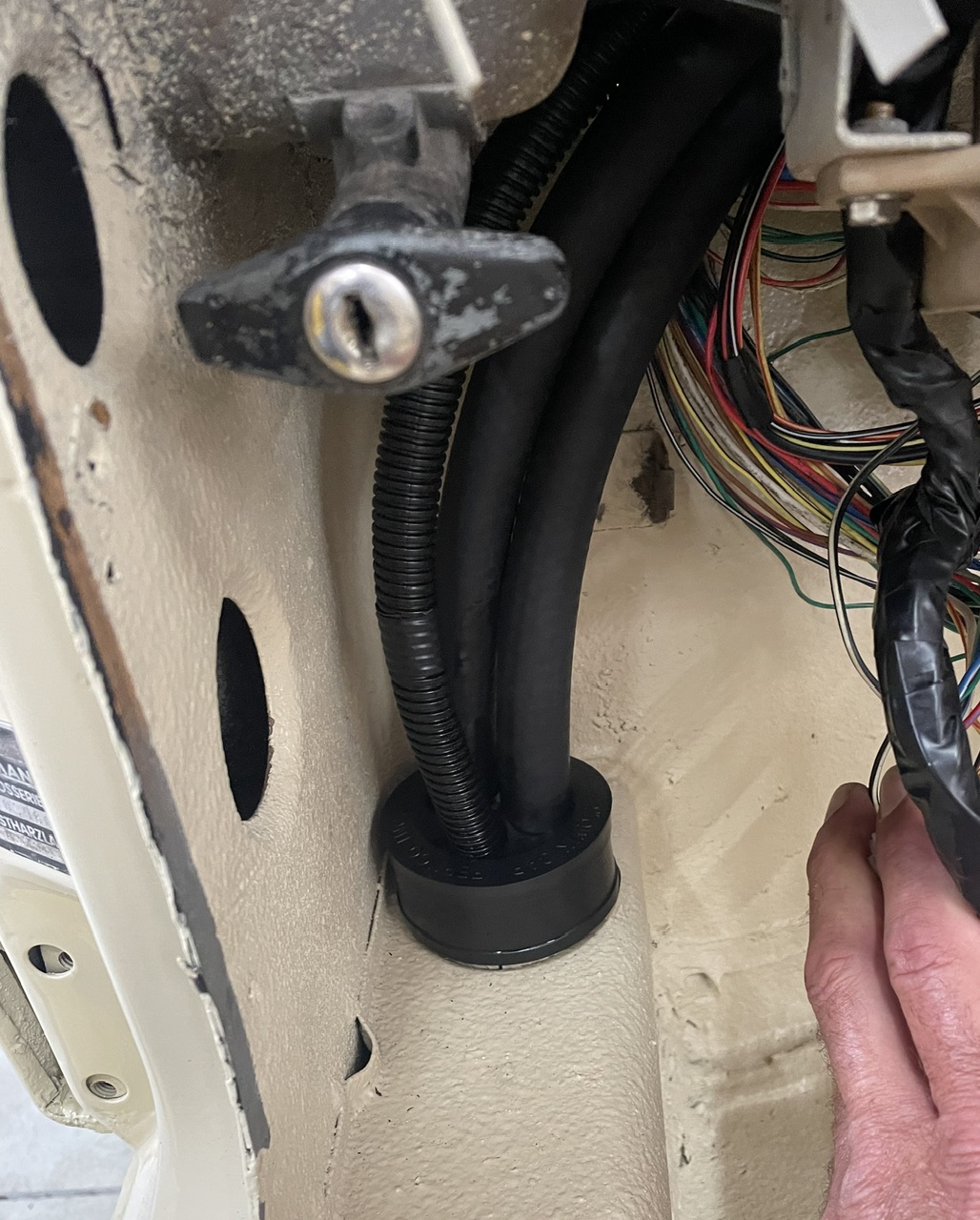Ran my heater core lines and some 12v lines through my drivers side heater tube. To seal off the tubes and keep critters out I used 2” Fernco caps. I cut pass-thru holes and they make a nice tight seal. I put caps at each end of the heater tubes. I used these on my 3.6 build years ago for the oil cooler lines and they held up perfect.