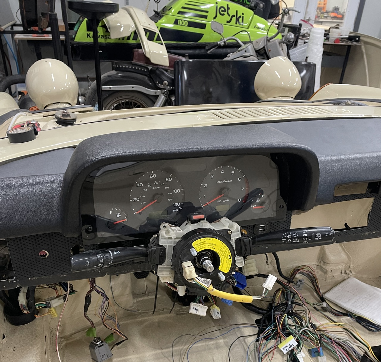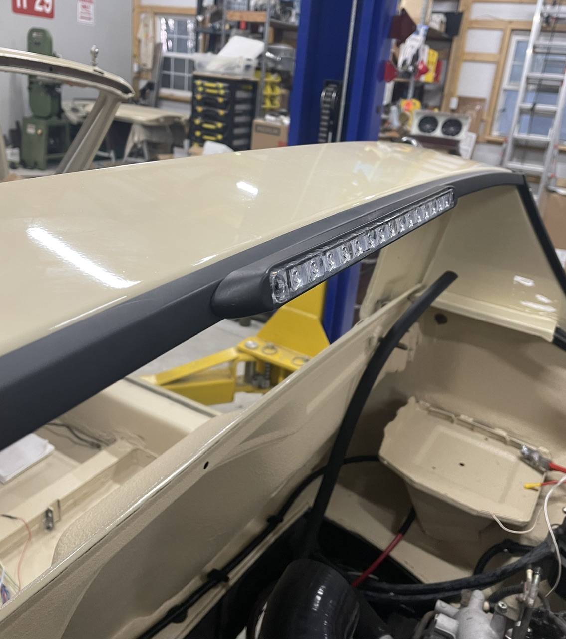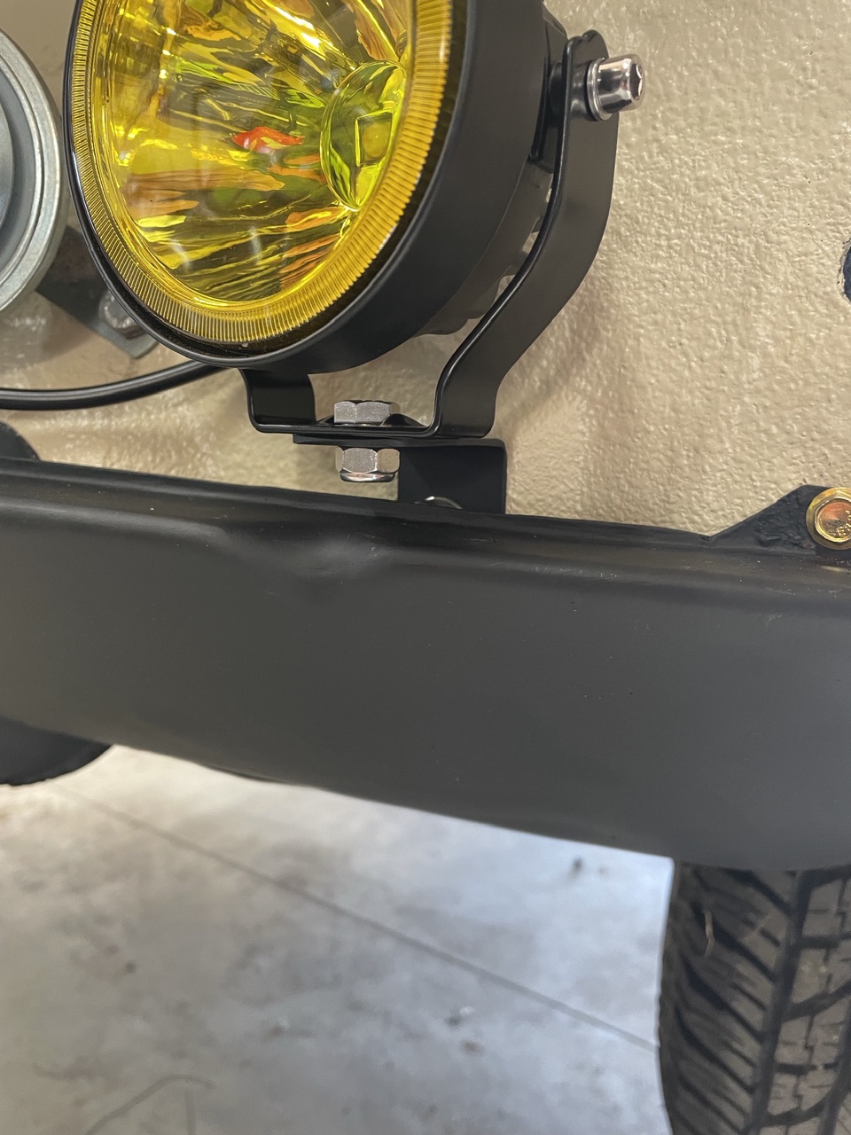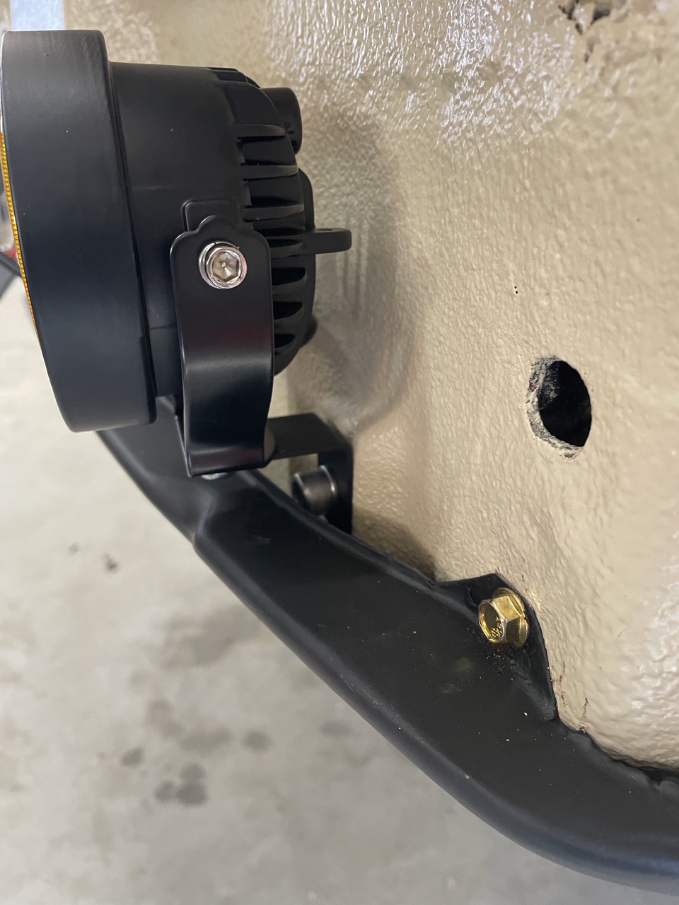 Worked on getting the front lighting completed. Installed and connected the parking lights/signals. This was as easy as putting brass spade connectors on the Suby harness ends and installing fresh rubber boots from 914rubber. I also wired the fogs and installed them. I’m using 4” led fogs in the bumper and same in the stinger bar. For the bumper fogs, I had to make some mounting brackets to position them correctly in the light grills.