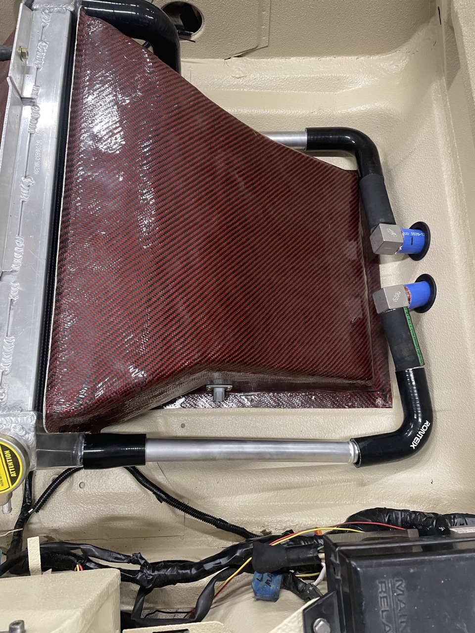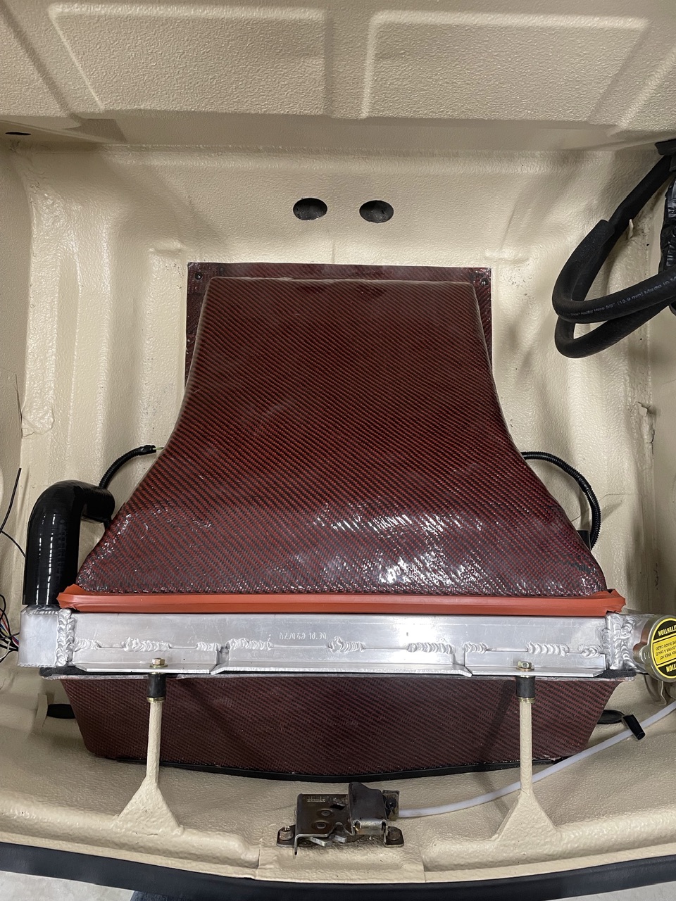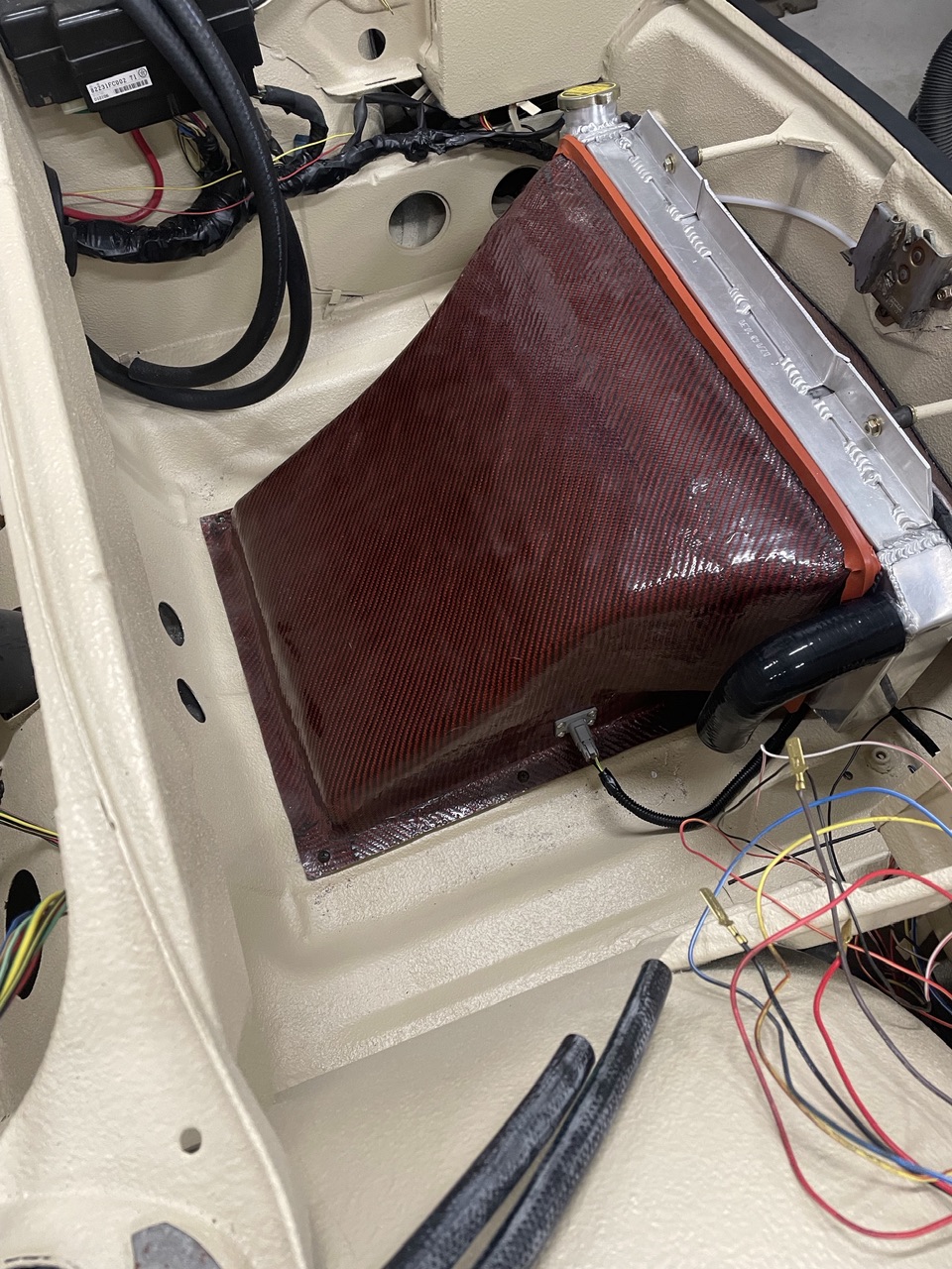 Then I played with my water lines and made the alum tubes to connect all the various silicone tube fittings. I think I’m going to take stock in a hose clamp company! It’s a little convoluted but I wanted to maintain as much trunk space as I can. The lines will be nice and symmetrical once I get it clamped up.