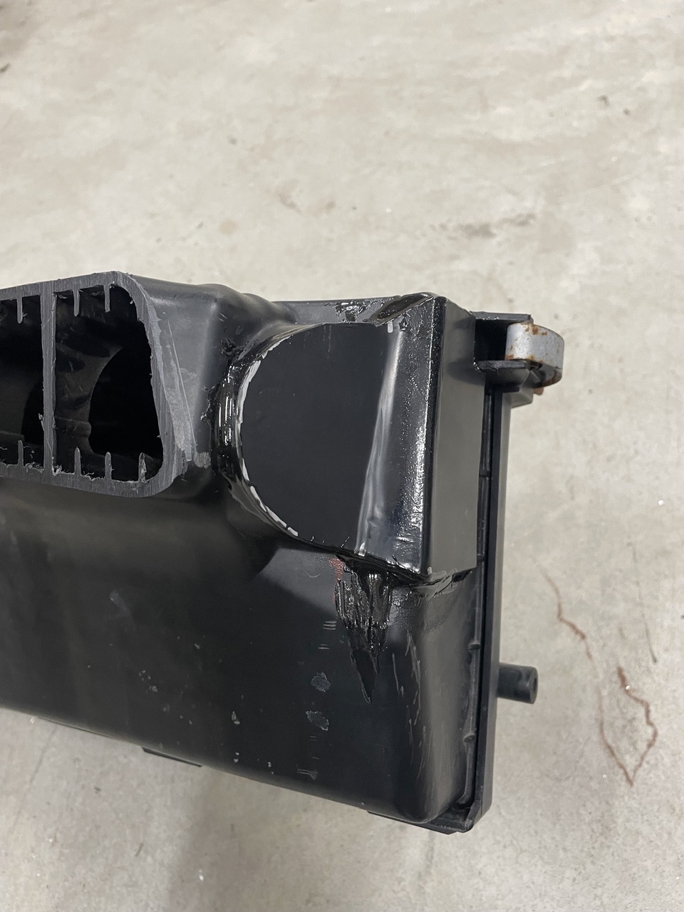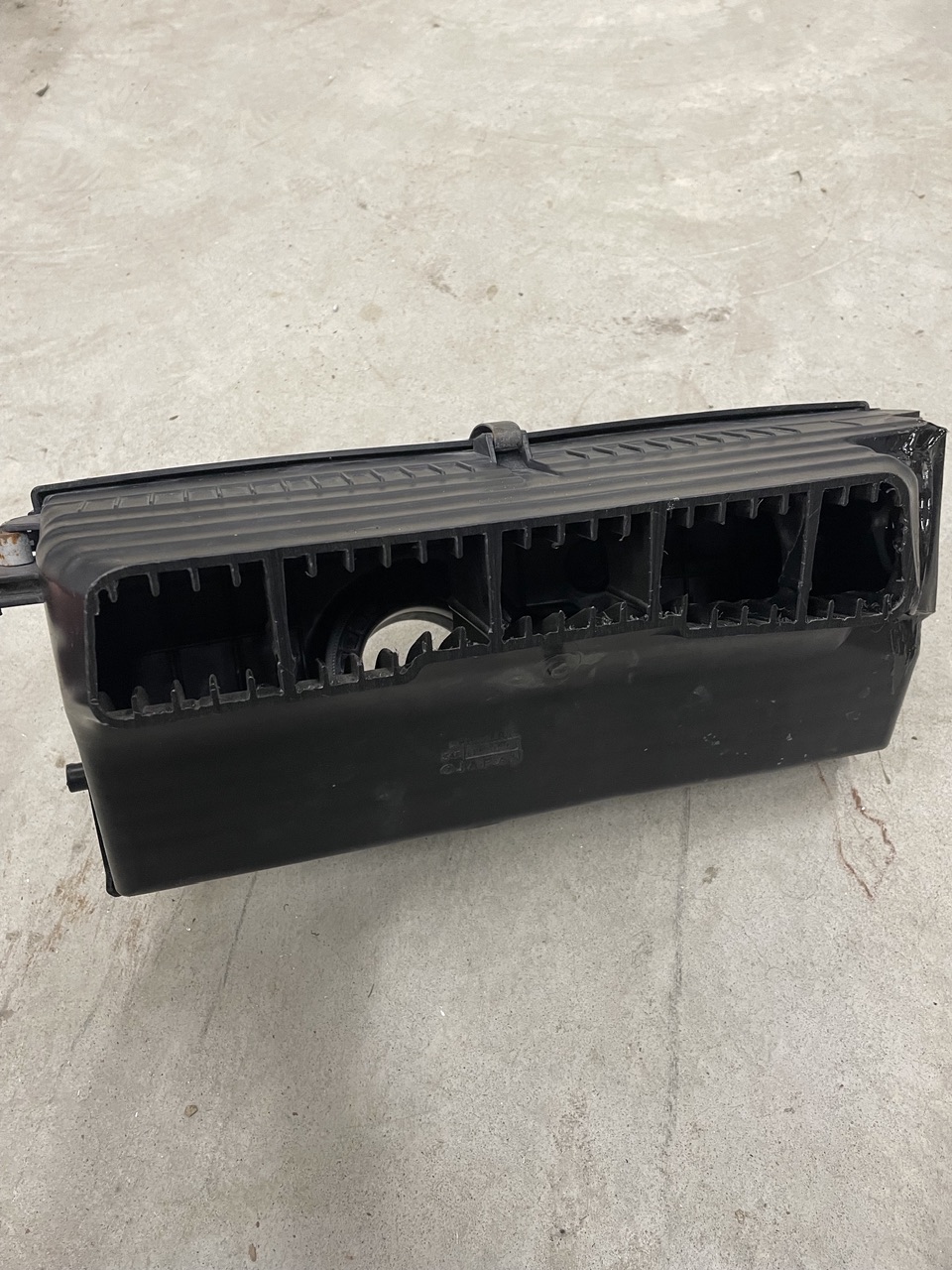 I decided to reuse/repurpose the stock Suby air filter box. I think it’s hard to beat a factory filter and I had it on hand, so……..I cut off the intake tube feeding the box and made an ABS block-off for it, then cut the front off the box to serve as the new intake. It provides lots of intake area and will breath from the very front of the engine bay in the recess for the 914-6 fan.