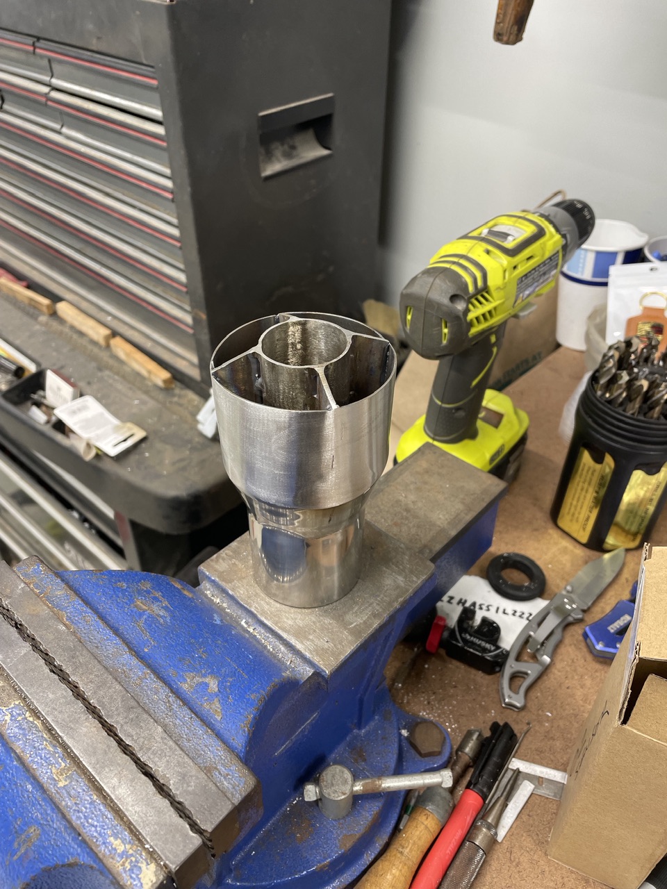 Ok, so……I finally finished the exhaust. I wanted an exhaust tip that was reminiscent of the vintage bomb sight megaphones, and I wanted to make a tip vs buy. I started with a flaired tube (2.25” to 3”) and put a 1.25” tube inside. It’s all stainless like rest of the exhaust.