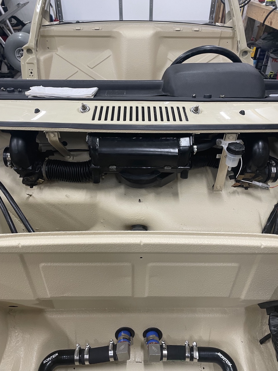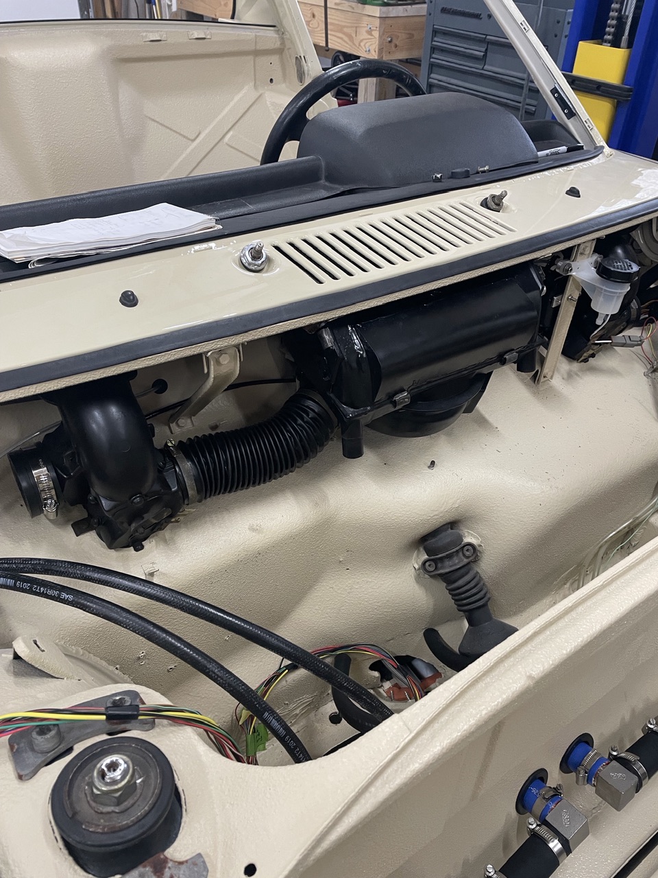 I connected up the air ducts, wiring, and heater core hoses. I also torqued down my wiper mounts so it’s officially done. Now I can move on to getting my tank installed once I get it cleaned out and painted. A day of victory over my nemesis the air box! |