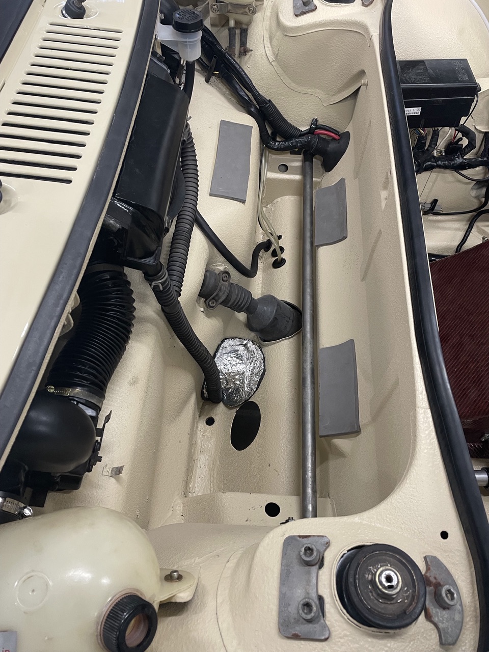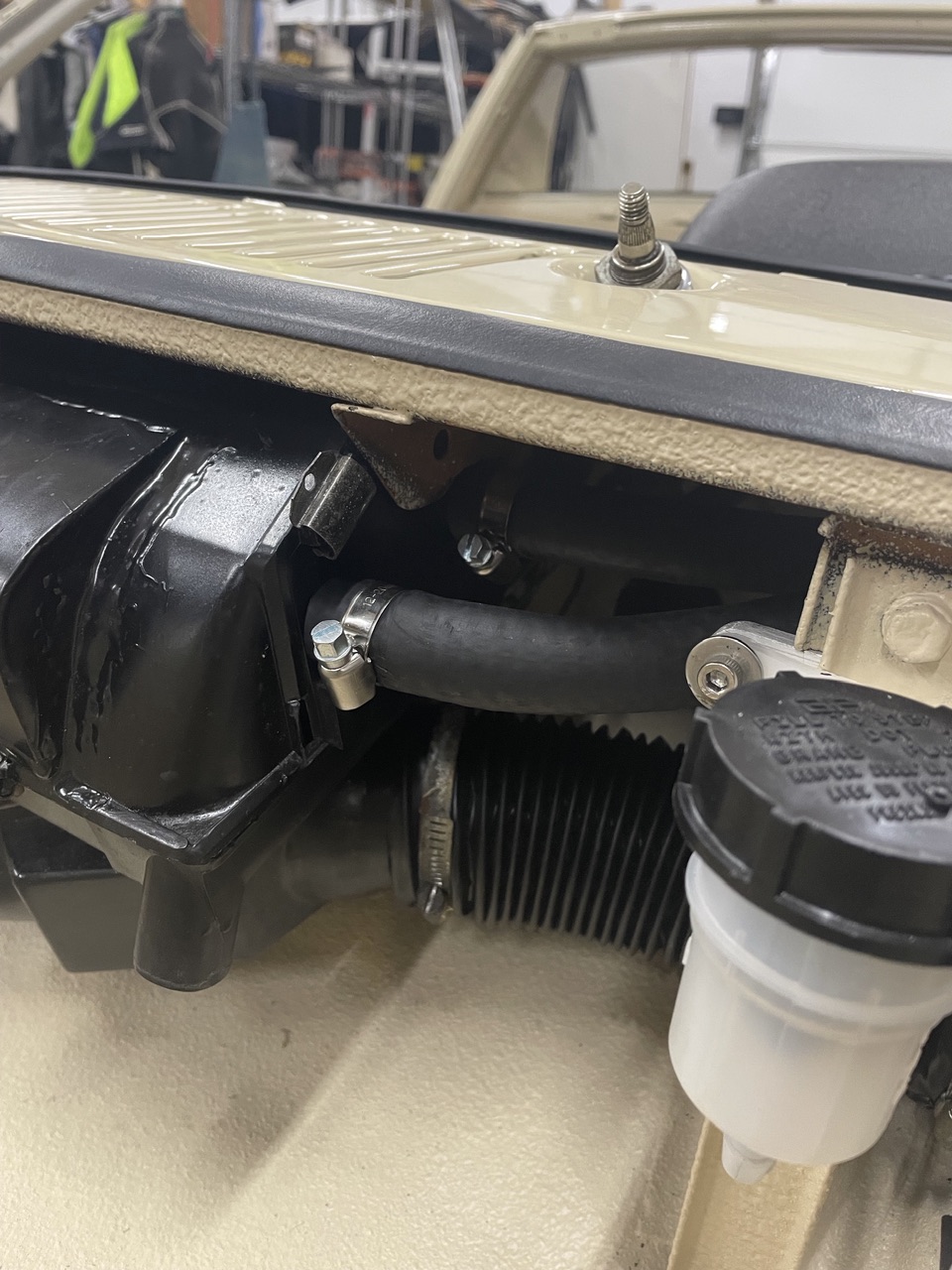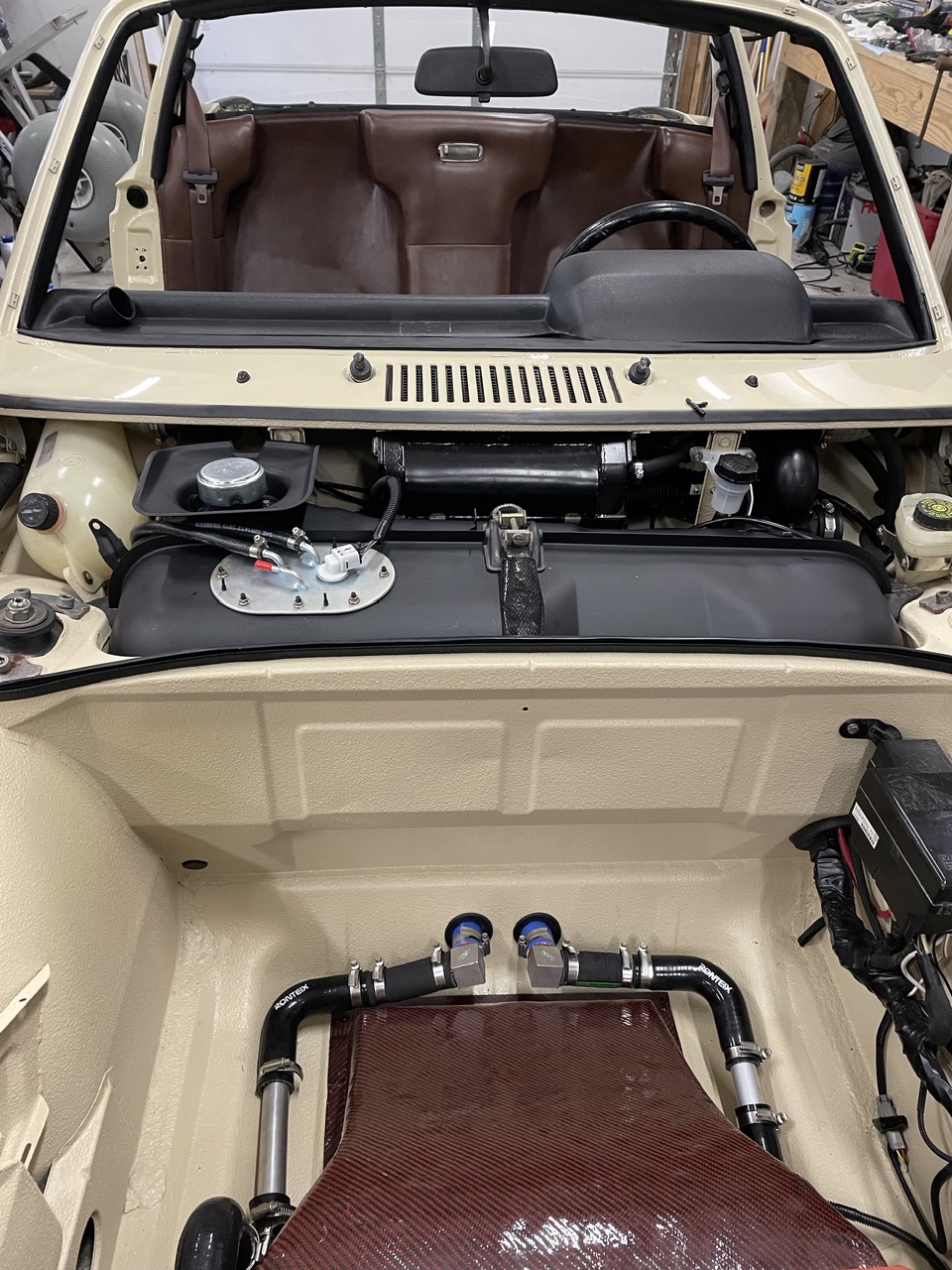Got all my water lines plumbed up today, including the heater valve and control cable. This is controlled by the temp selector in the dash (I’m using the Suby hvac controls). It’s a long run for the cable but it seems to work great. It runs from dash through the heater tube in pass side long, then to valve.