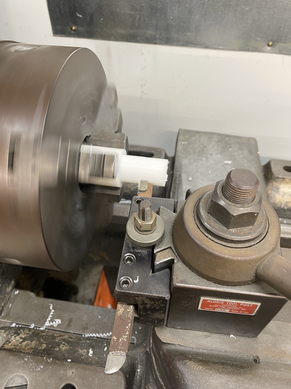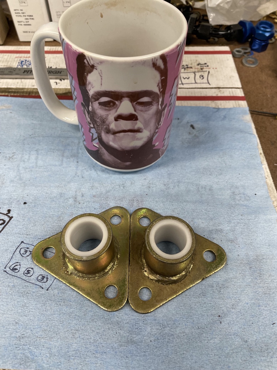 I have a Weltmeister sway bar that I bought for the project but it came with no bushings. I couldn’t seem to find any so I made some. I turned down some delrin to make the bushings where the bar passes through the mounting brackets. I got the bushings done about an hour before we lost power. Today we got power and internet back and I was able to get the sway bar installed. I used the 914 Limited sway bar install plates and they make the job easy (my car came without sway bars/mounts). Here’s a couple pics of bushing making 101…. |