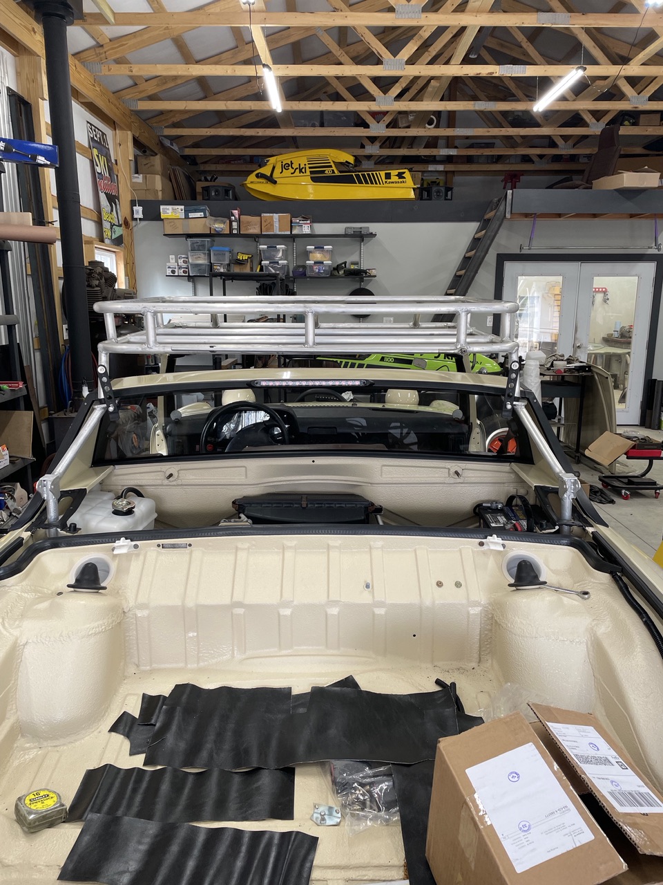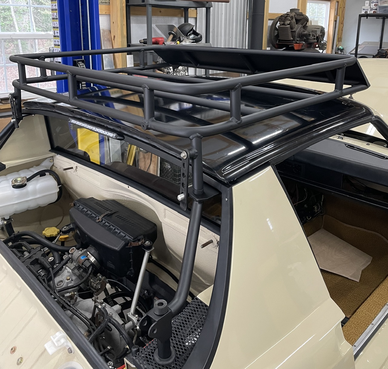 Something to think about: How about coating the roof rack and brush bar a dark brown to match the backpad - gives the car a nice two tone contrast to the black targa top, bumper tops and flares? Little bit of a nuanced difference to the obvious "blackened" approach.... - Tony PS. Still loving this build BTW. Nice job on the engine firing up!! That would look good. I’m going to stay with black for touch up reasons though. I have a feeling there will be spots to touch up on the regular and there’s nothing like the ease of flat black spray cans. |