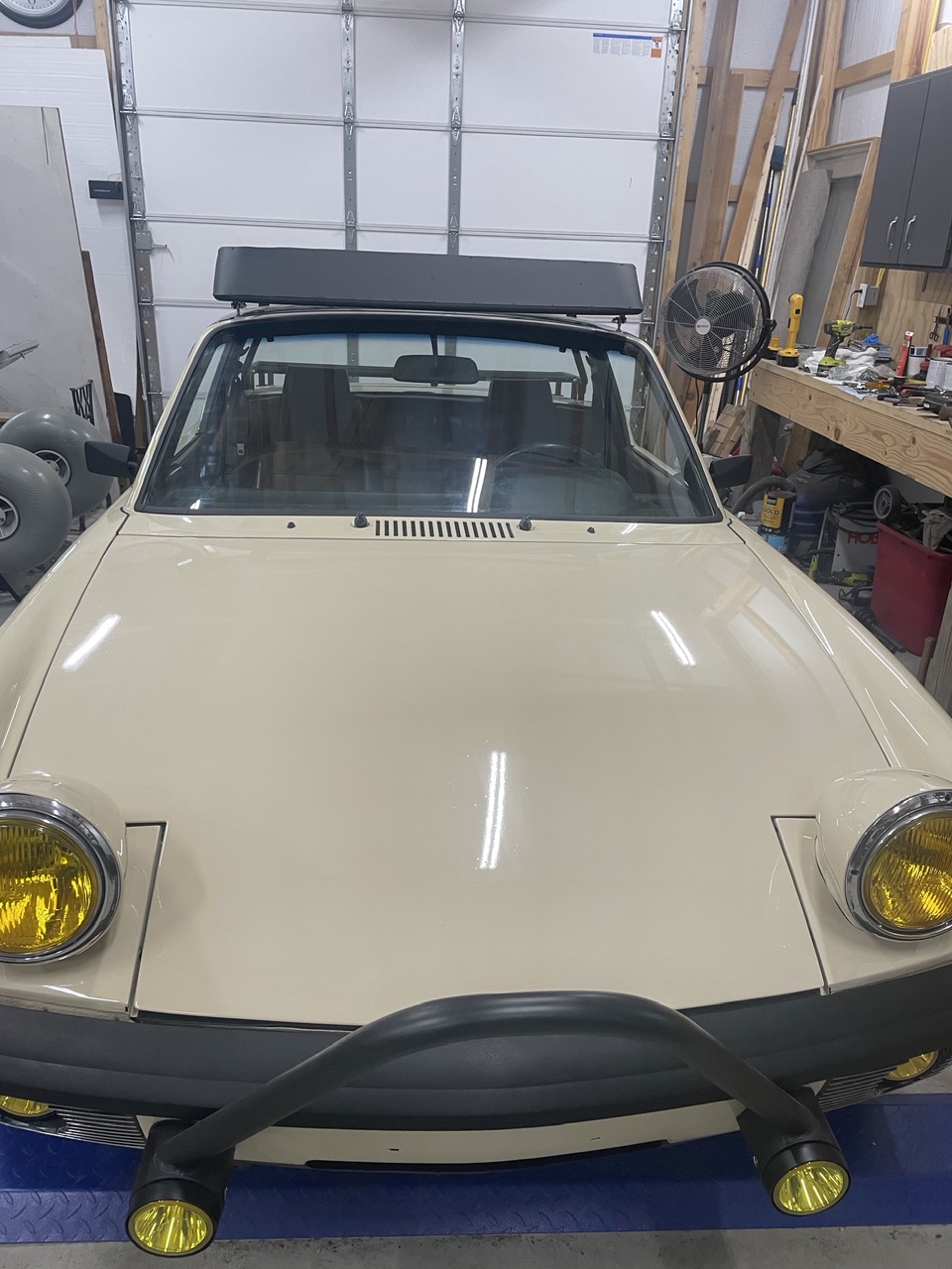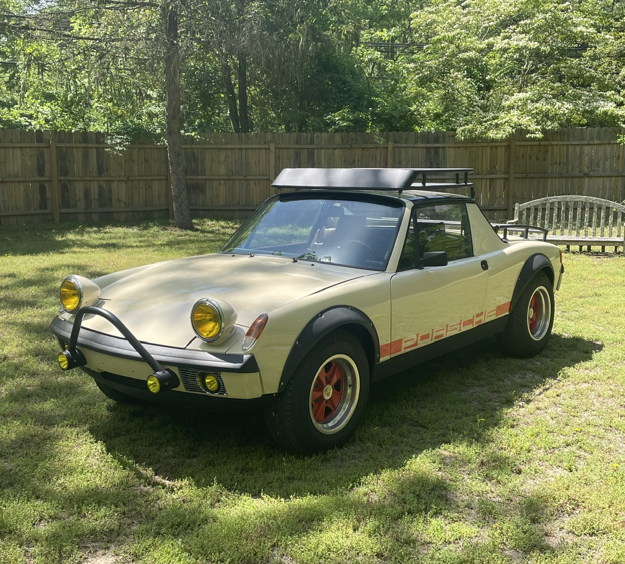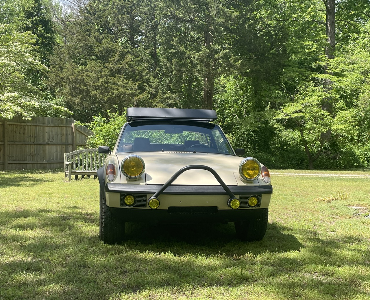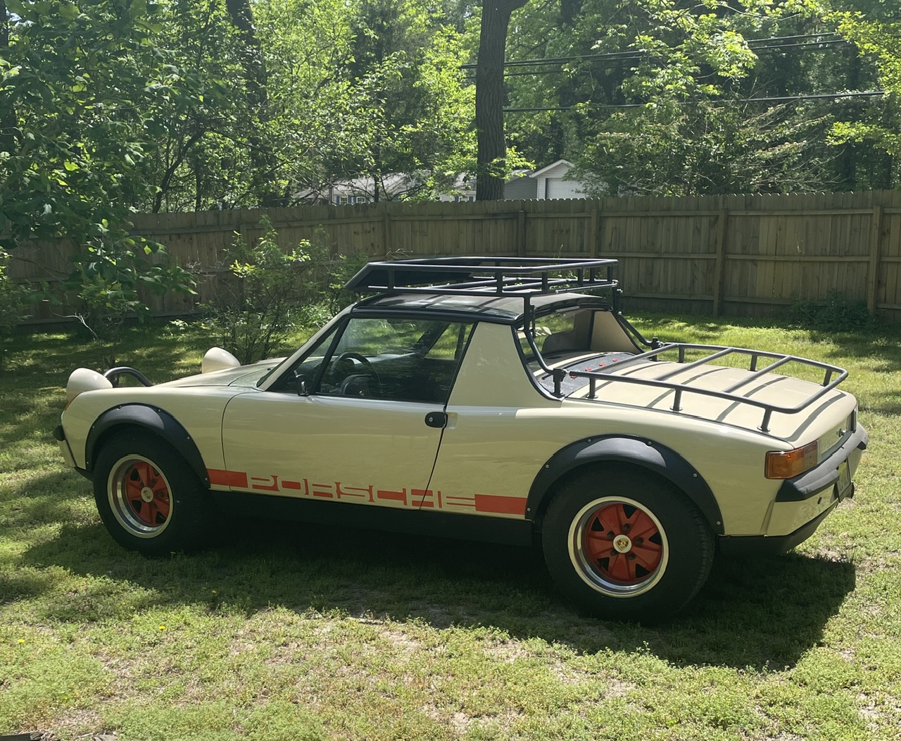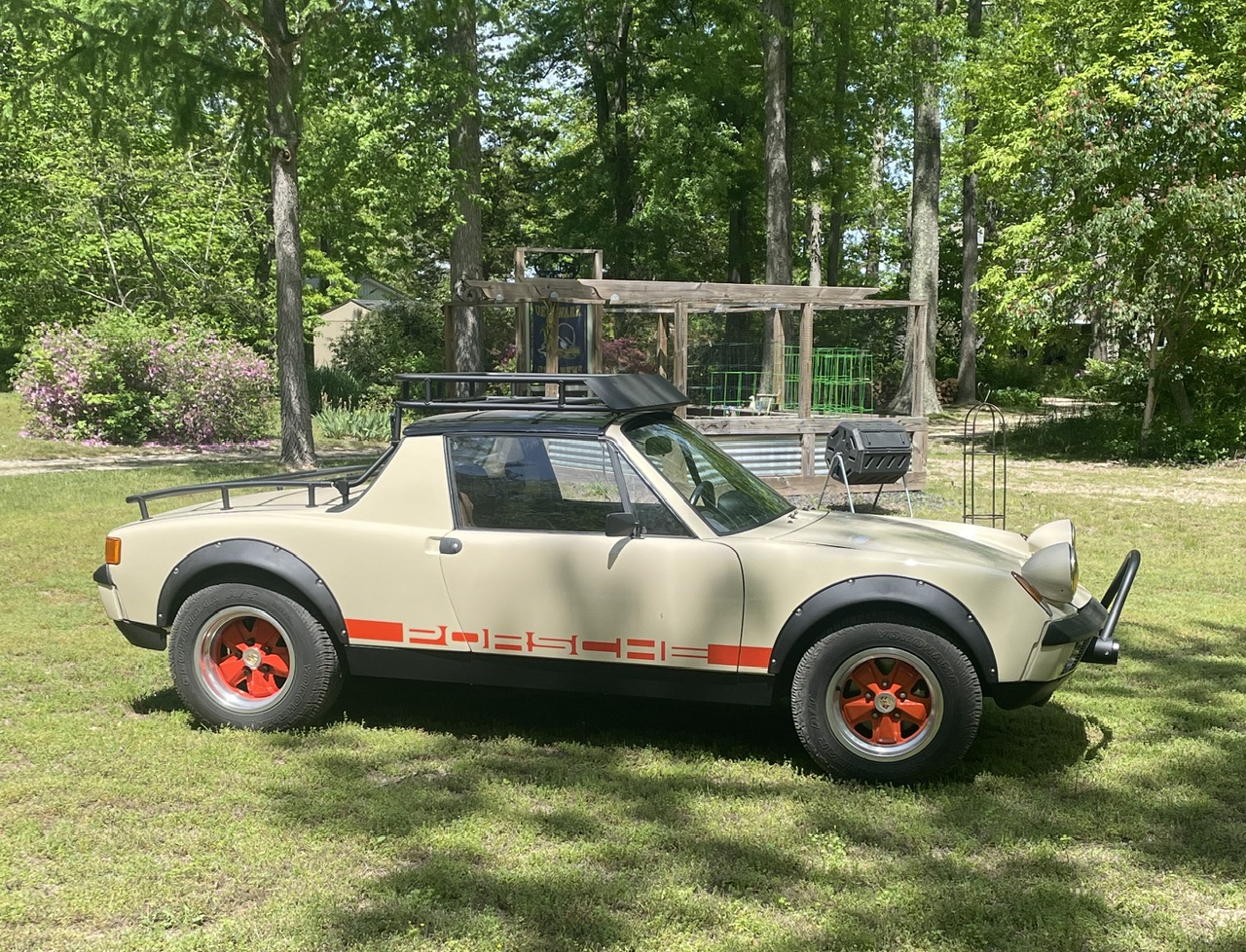 The cooling system seems to work great. We’re in the middle of a heat wave here in NJ and the fans don’t kick on at all unless I’m stopped at a light or something for a pretty long period. As soon as I’m rolling again they shut off pretty quickly. The car is very “driveable”. It has good torque and drives well down low, but also kicks in nice at higher rpm when you get the urge. I’m not sure on gas mileage yet but I should know soon, as I’m near ready for the 2nd fill up. I was worried about the roof rack making noise or even the tubes oscillating/humming at speed. As it turns out, it makes no noise at all. In fact, the deflector I built into the front of the rack reduces the buffeting you normally get in a 914 and makes it even quieter than stock…..a lucky win! The shifting is very good and is still on the initial adjustments, which were just a “good guess” at best. I may tweak it a bit over time but it really works well as is. As far as the Safari mods, it feels much closer to a standard 914 than I thought it would. I really don’t perceive any ill effects as of yet. The raised height makes it easier to get in/out of the car, which in the future might be an advantage (I’m still pretty limber, but who knows what Father Time will bring in the future). One nuisance issue is the fuel gauge seems to operate from 1/2 (nearly empty tank) to full (full tank). I guess the Subaru sender float arm needs some adjustment (bending). I’ll get to this some day. |