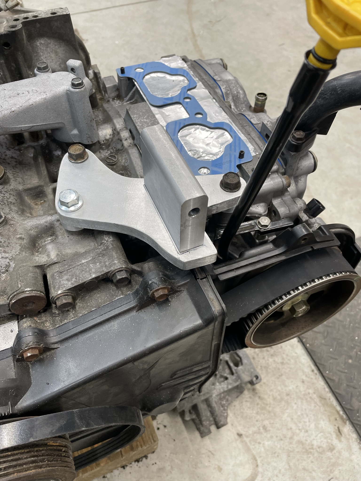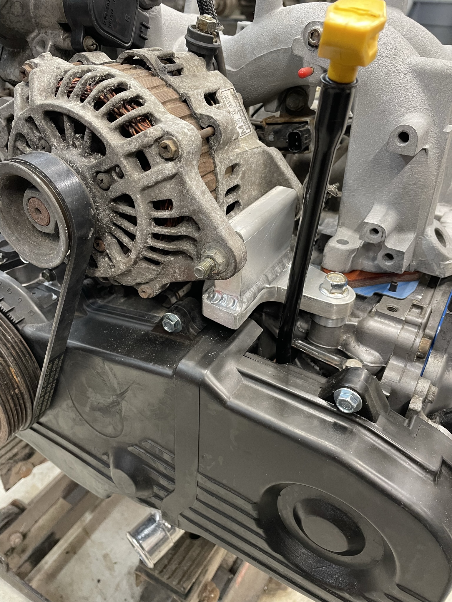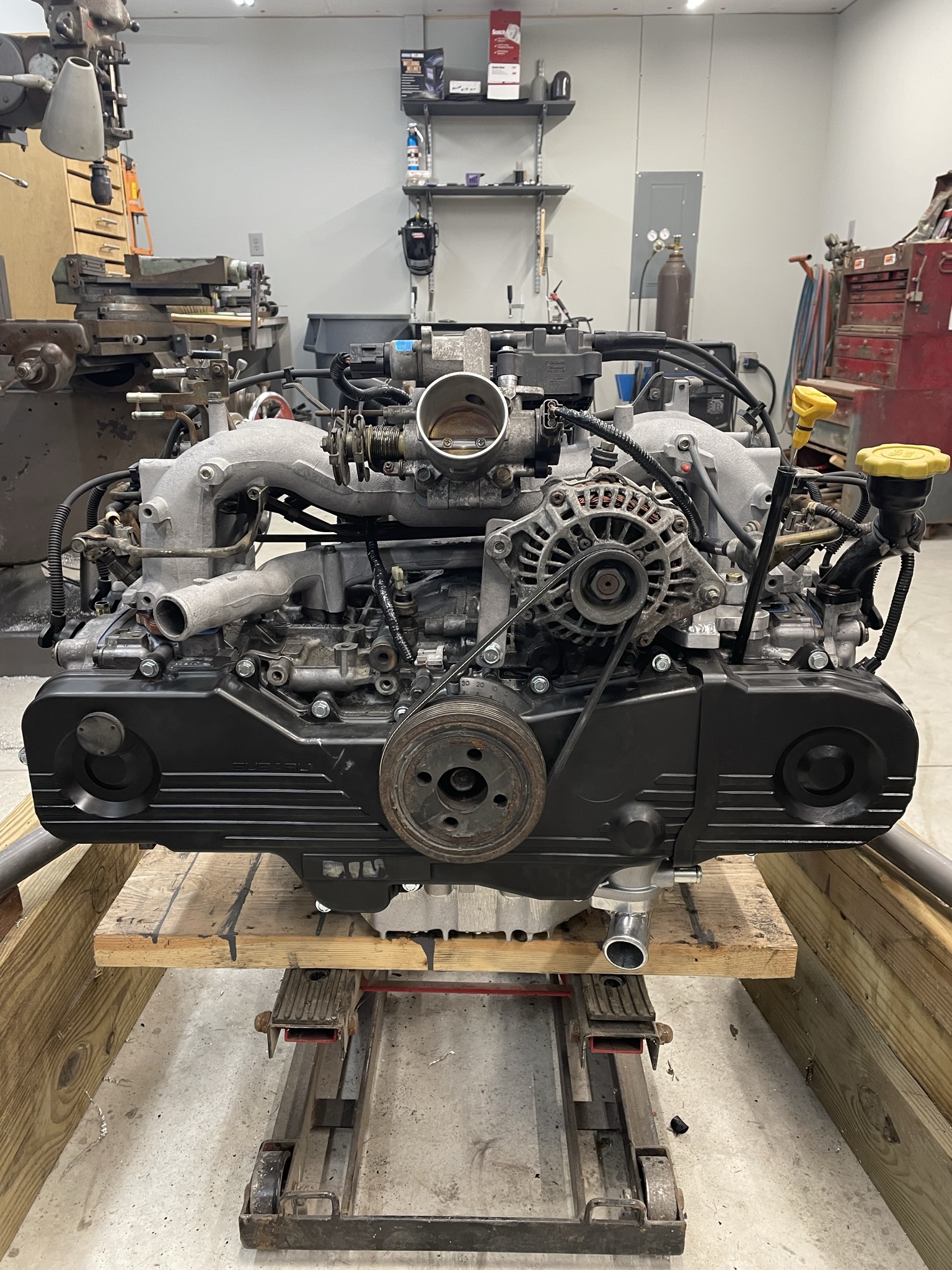 First test fit of the engine/trans. Everything fit up well. I was concerned about the starter and clutch slave cylinder but all cleared just fine. Looks like my cradle measuring/ guessing/cursing was spot on.