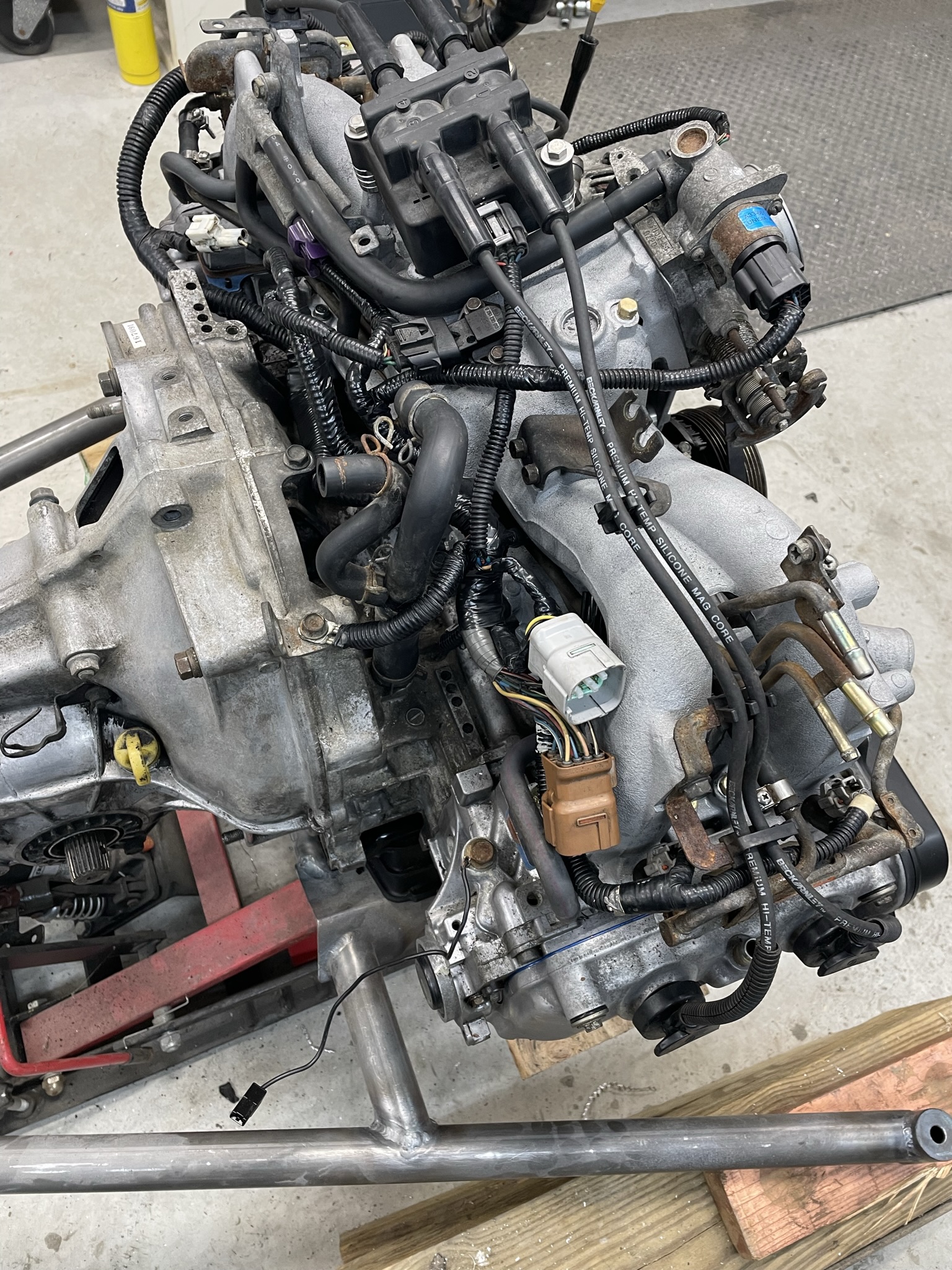 Worked out the engine harness today. I had to undress the harness and reconfigure it to account for the manifold flip. All wires reached the new locations except for the throttle position sensor. I extended the 3 wires to the TPS and redressed the harness. Everything all connected up and ready to go.
