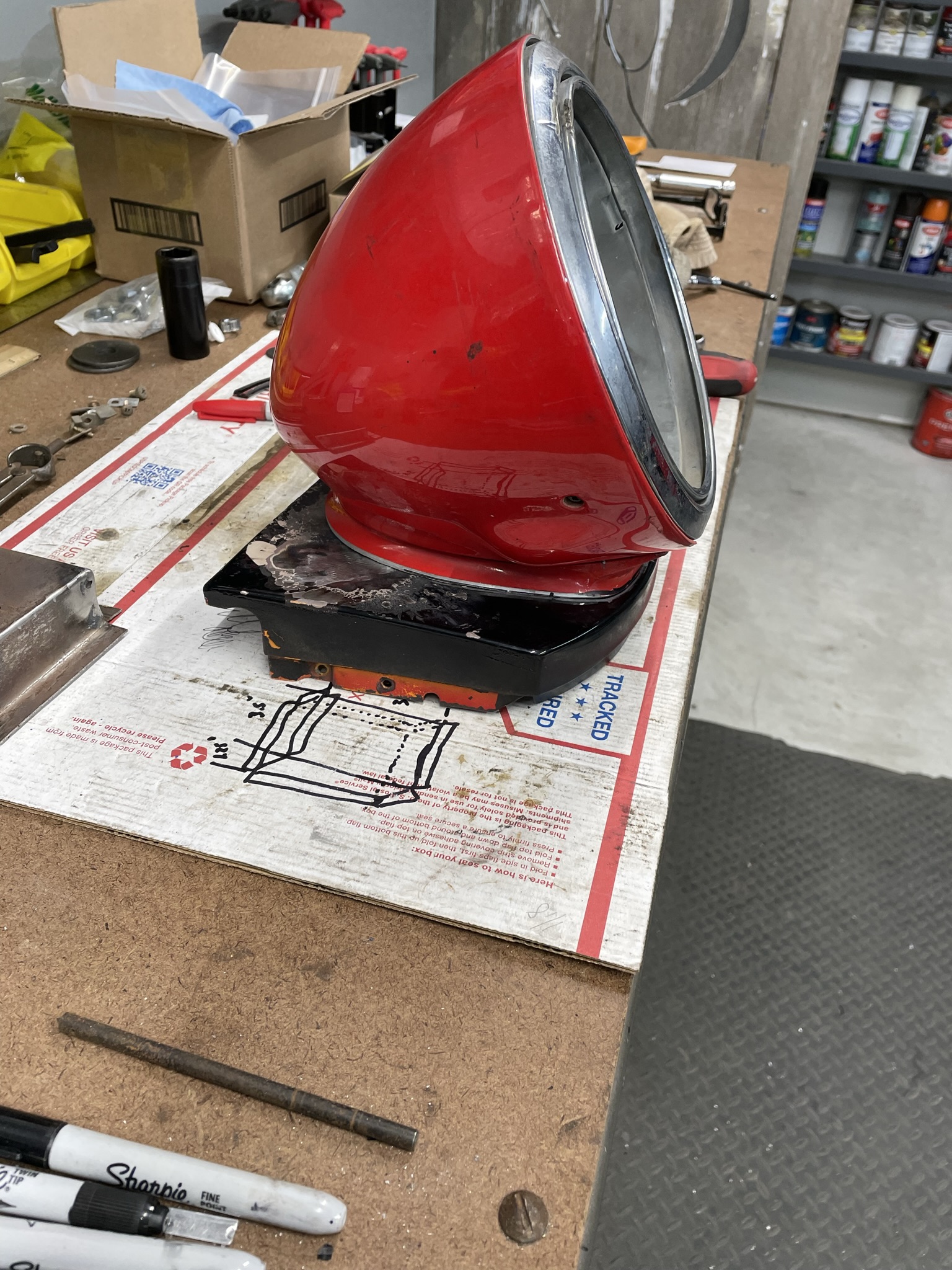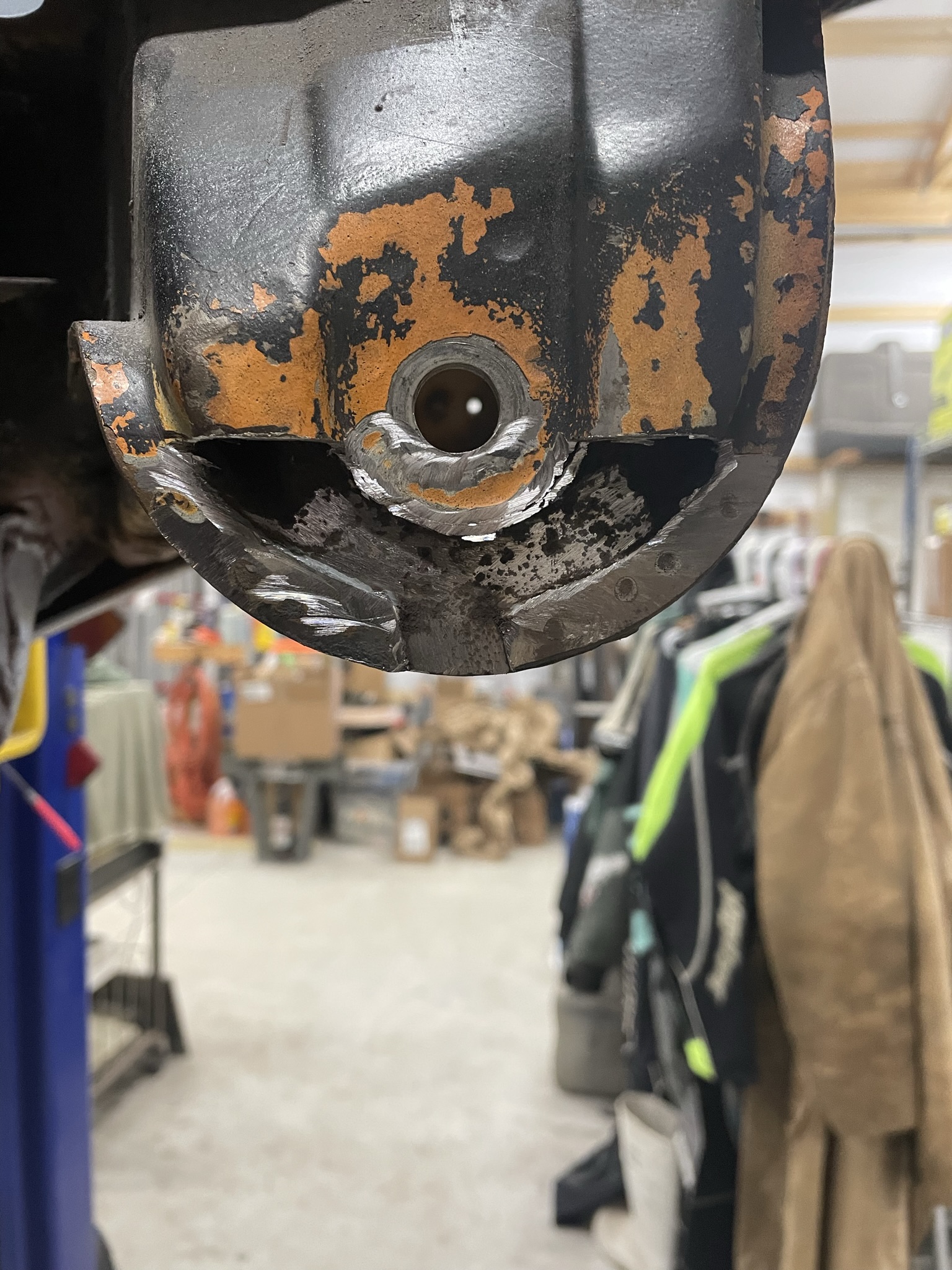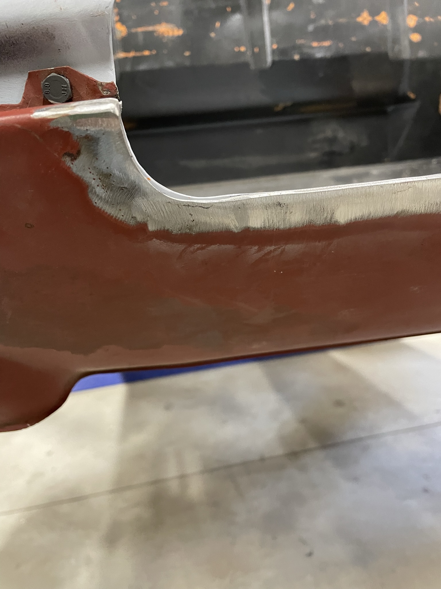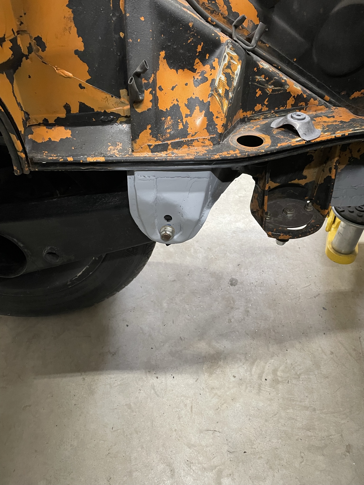 Started the process by cutting off the box section of the mount (saving for attachment later), then adding a section to the internals of the “ear” (not shown in pics). Then added a 16ga layer that ties to upper ear and extends 3/8 lower than existing end of ear. |