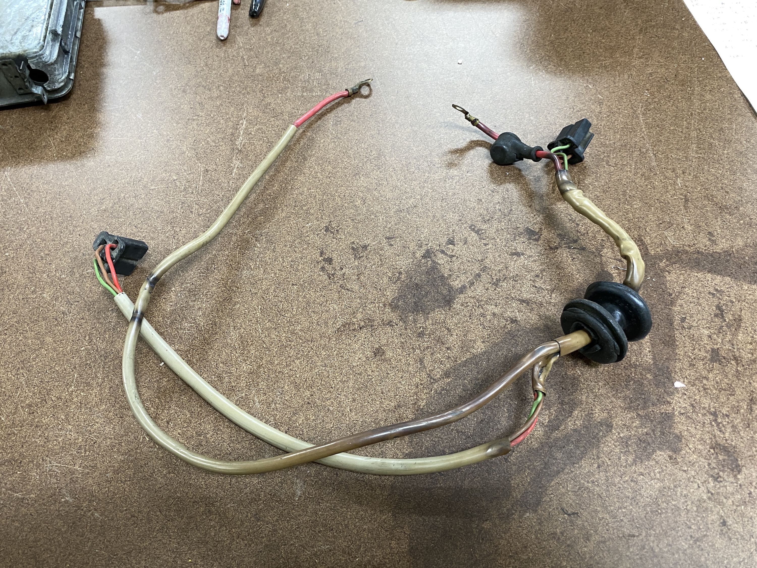 True Story: I had just finished a two year restoration of my '75 914. All systems GO! I ask my wife to join me for the first "shake down" drive. We get two houses down the street and smoke starts billowing from the engine cover. I shut it down, we jump out of the car, open the engine cover, LOTS of white smoke, neighbors start to panic and offer to call the fire department. Smoke clears. After investigation, a portion of the insulation on the alternator harness had chaffed to the point of shorting out on the engine tin then , heating up and catching on fire. Crisis averted. It could have been waaaay worse. This of course happened after multiple engine start ups and shut downs during the restoration process. Harness is long gone. Could be a candidate if the harness is still around |