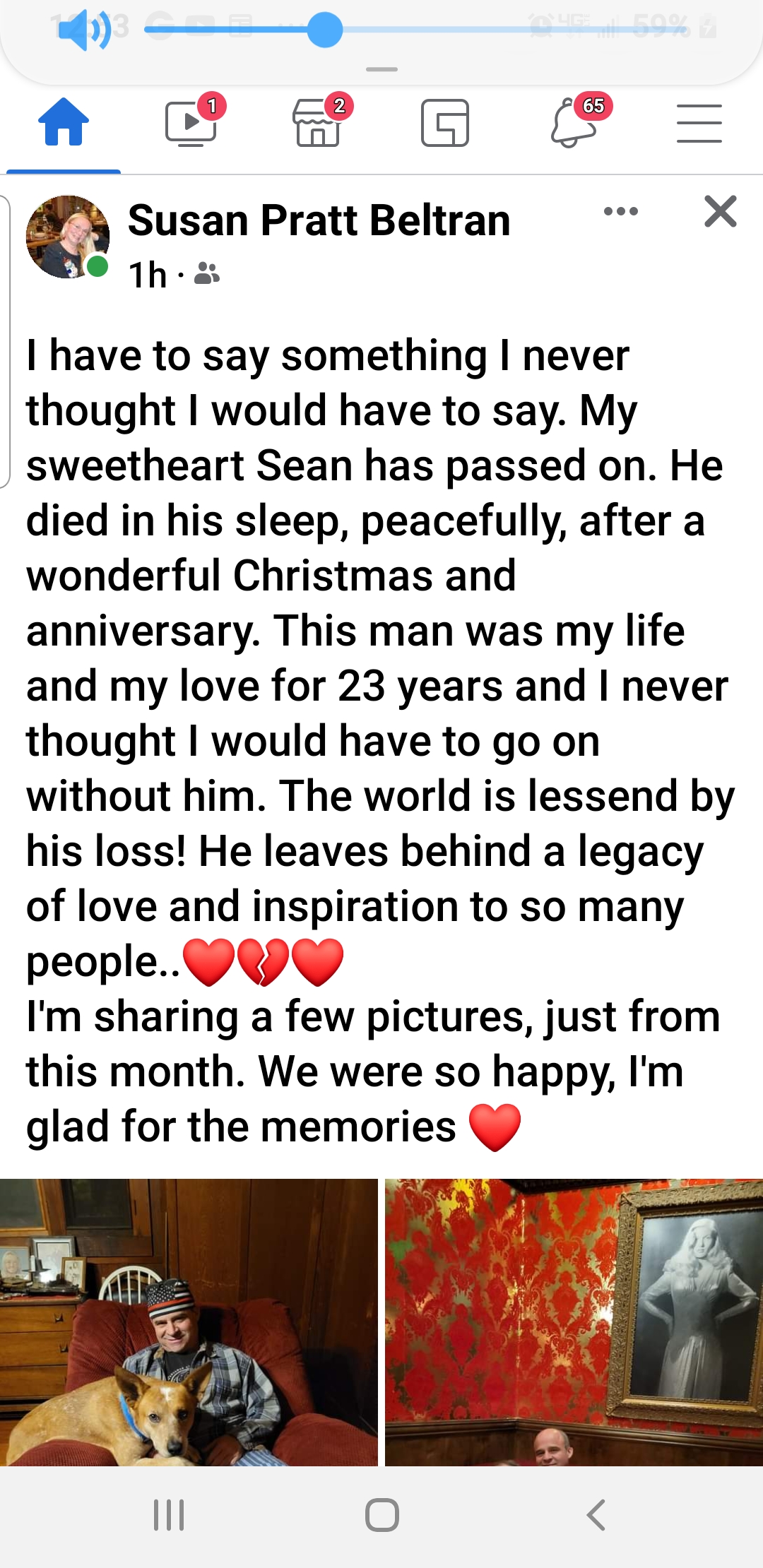 So sorry for her loss. Sad he was a young guy. That is how I would like to go, in my sleep, no suffering with a bunch of tubes keeping me alive.