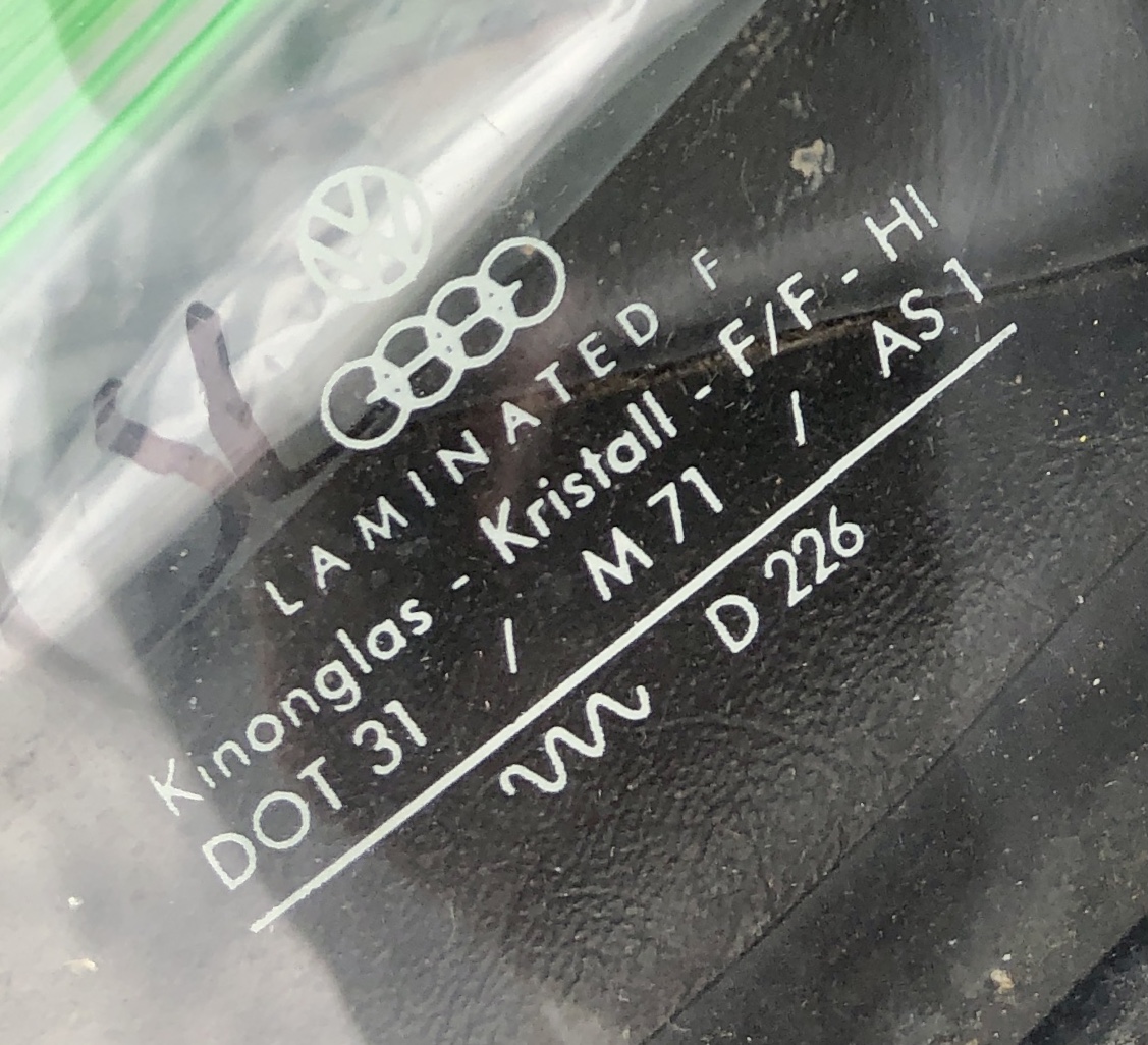 I thought OEM was sigla.and it is etched in the glass not a sticker. Rick, Yes Sigla glass stamped by the glass factory is correct, but this is a peal off sticker. I'll do more checking and report back. Tom interesting. original screen in mine. never been replaced. does not have the audi rings like @TJB/914 just VW insignia. no mention of sigla either. its a jan 74 build. all the other letters codes are same as TJB/914 side glass is the same just VW insignia same with rear glass. different codes. but only VW insig. i have a spare screen in its box still that i picked up in 90 from porsche in USA. shipped it back with the car. would be genuine but manufactured at later date? never taken a close look at markings apart from confirming it was completely clear. (as was required by law in aus back then). i'd have to pull it out and unbox it to see what was on that. ps - sekurit is a brand name for automotive glass divsion of saint-gobain. pretty much the best glass makers in the world. though other glass companies would probably argue. its interesting that the windscreen does not have sekurit branding. a lot of the original parts in 914s did not have the manufacturer branding, but were stamped VW even if made by an external supplier. exhaust mufflers originally for instance just were given a VW stamp. often the replacement parts carry the manufacturer branding. its a fuzzy area. |