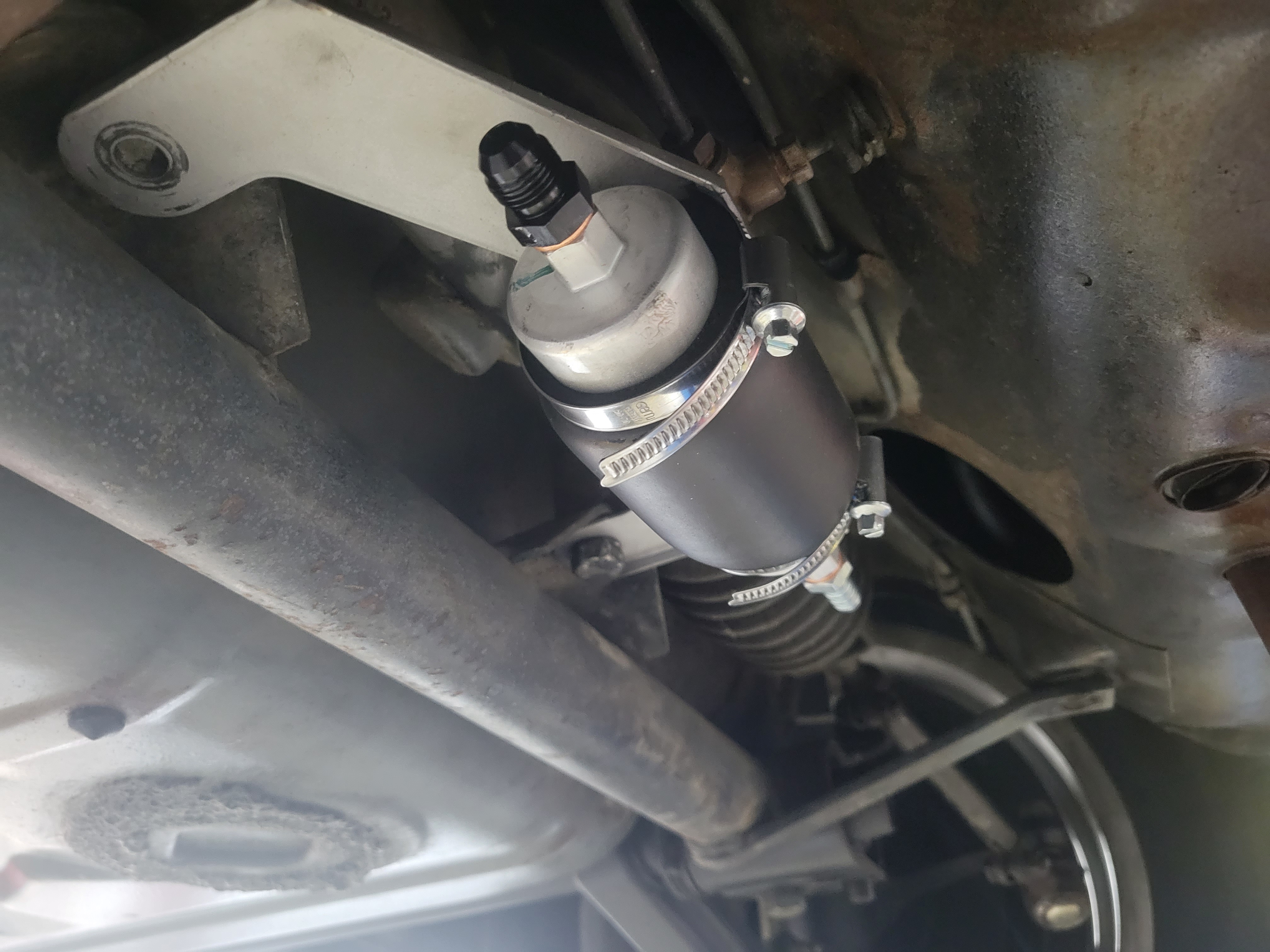 To even look at what might be the problem, even in your garage, you jack up the car, get under it, remove the pan retaining hardware, set the pan aside, investigate the problem, then (if you’re lucky) perform the repair, put everything back together and be on your way. This would be a major undertaking with a dead car south of a place like Drain OR. Best solution for moving the pump forward is sourcing a OEM cover/pump holder and mimicking the factory setup. Figure out how you intend to power the pump first. Planning on carrying a floor jack rather than trusting the factory jack? Not on level ground? You roll the dice going under the car. Maybe become a statistic.