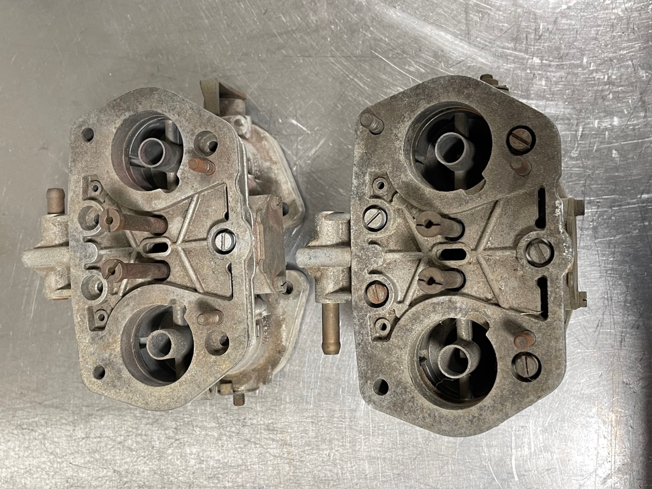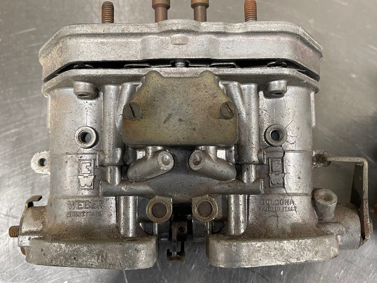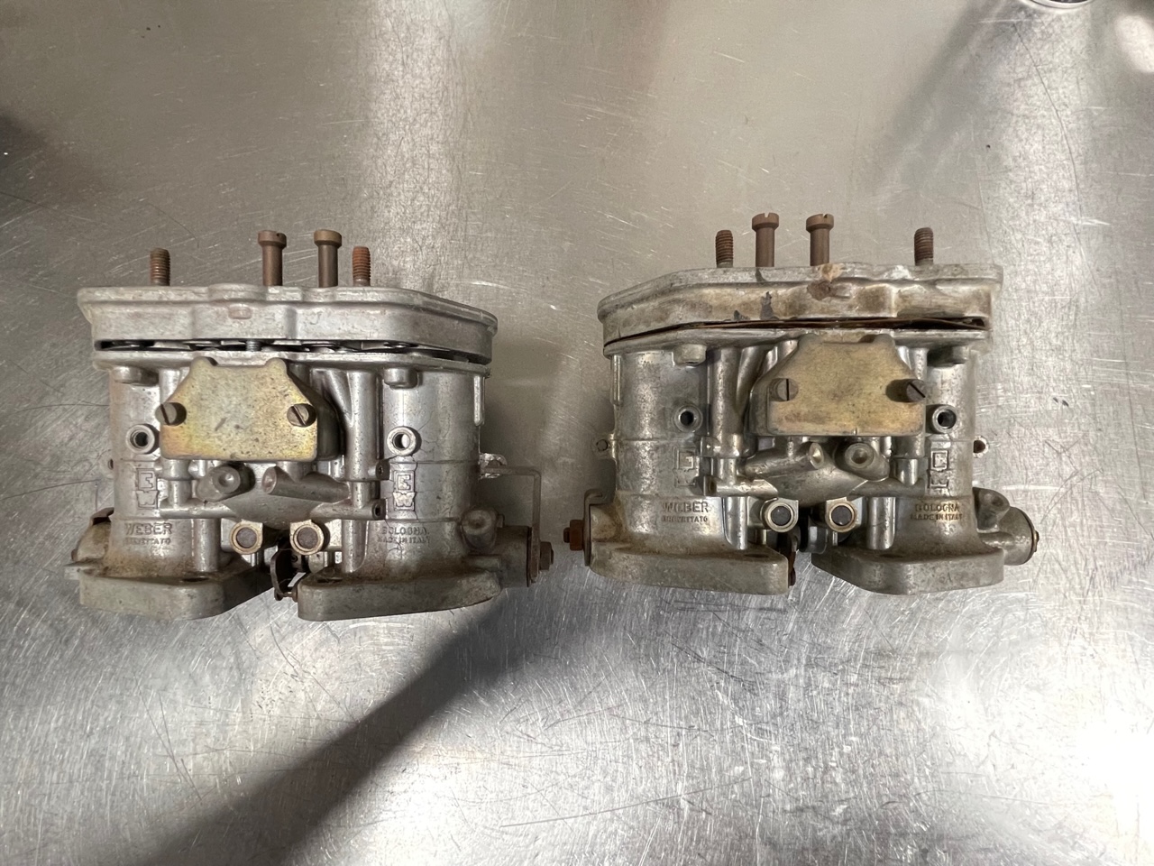 Italian made Weber 40mm carbs. They need a full rebuild. As you can see, on of the butterflies is very corroded. $195 + 20 ship. Email - Mark@MarkEpstein.net to purchase.