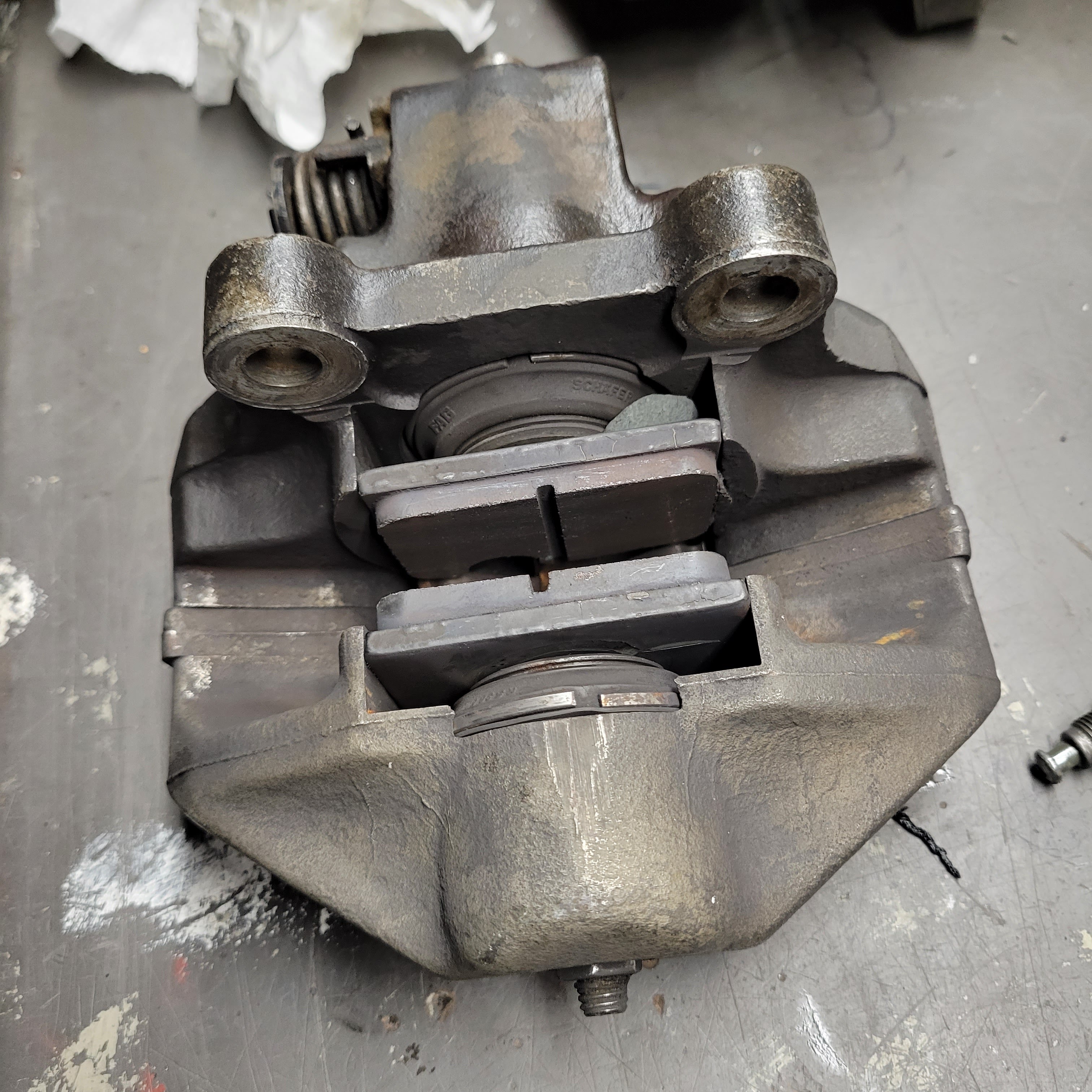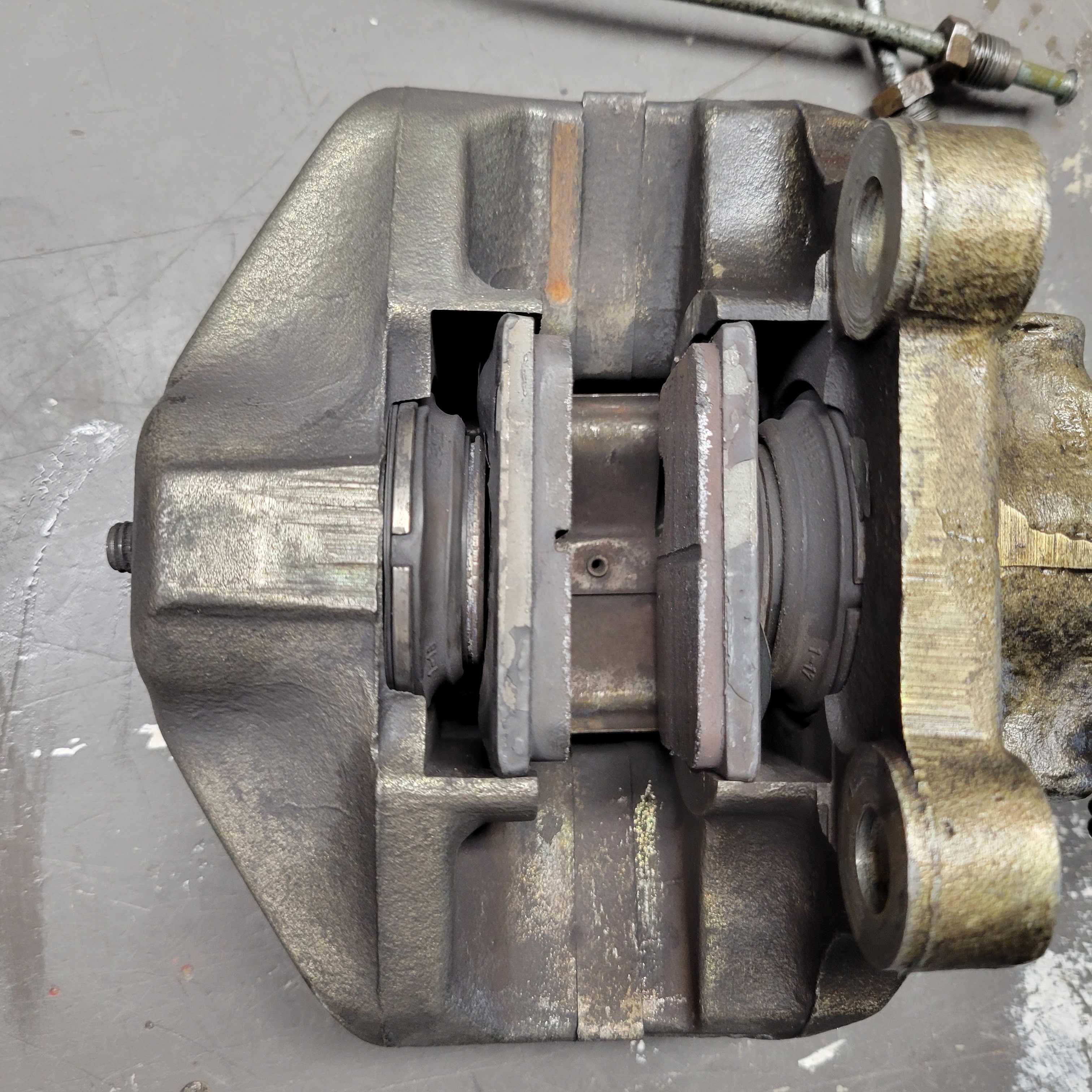 Nope - I’m wrong on a casting common to all three applications. You can see the /4 casting has a different formation than the Ferrari rear inboard casting. The other thing that is implied is that Krieger’s calipers had to be drilled to the /6 orientation meaning that the 308s weren’t dual bleed screw. The mystery continues as to what would prompt ATE to have two bleed screws on the /4. (IMG:style_emoticons/default/confused24.gif) I’m still thinking someone else was using the /4 casting for another OEM. That will take some digging. I’ll see what I can find on ATE classic site. /4 photo from Pelican The ONLY applications that use this type of rear caliper are: 914-4 -914-6 - use a larger version of the 70-72 914-4 piston guts along with the M10 adjuster threads....a unicorn exclusive to the 914-6 caliper Ferrari 308 - uses the same piston guts and M10 adjusters as the Late 914-4 caliper. Alfa (38mm, but different parking brake lever configuration and a few other things)..use the same piston guts as the Ferrari 308, but the external threads on the outer adjuster are M10x1.25 rather than M8x1.25 like the 914 (4 and 6) and Ferrari calipers, and the inner setup is different as well. I've also seen one instance of these being used on a BMW....not sure if OE or not, can't remember the model, but it was something special. The inboard castings are a bit different between the early and late 914-4...the area where you insert the clips to retain the pad pins has a bit more relief on one than the other...maybe just an updated tool, who knows. |