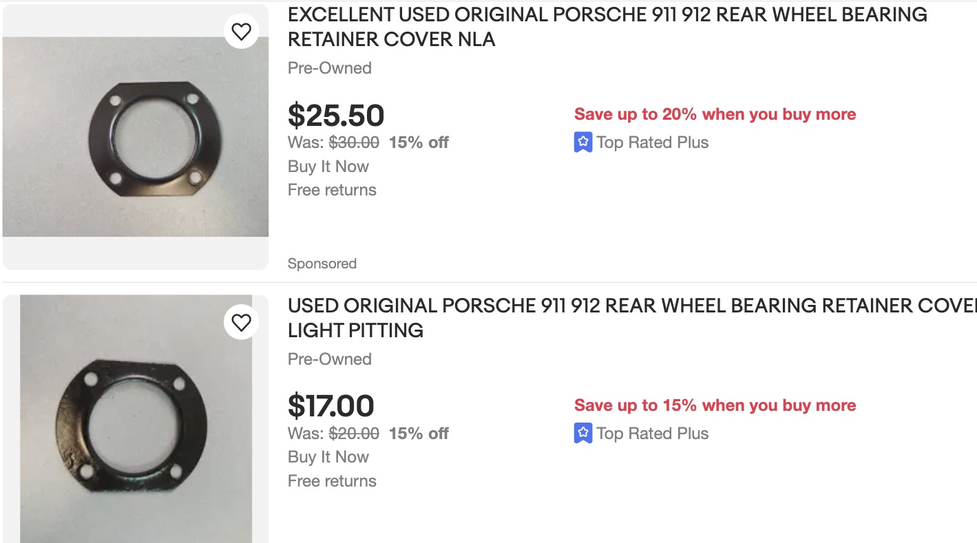 Matt What is done with bearing cover? Does 911 backing plate replace bearing cover or do we modify bearing backing plate and use both together? thanks Matt There's two parts to the 911 e-brake setup. The backing plate itself and a bearing cap. You'll need both items from an early 911. Plus you know you need to weld on a backing bracket for the e-brake shoes correct. Get Chris Foleys e-brake cable parts and good to go. |