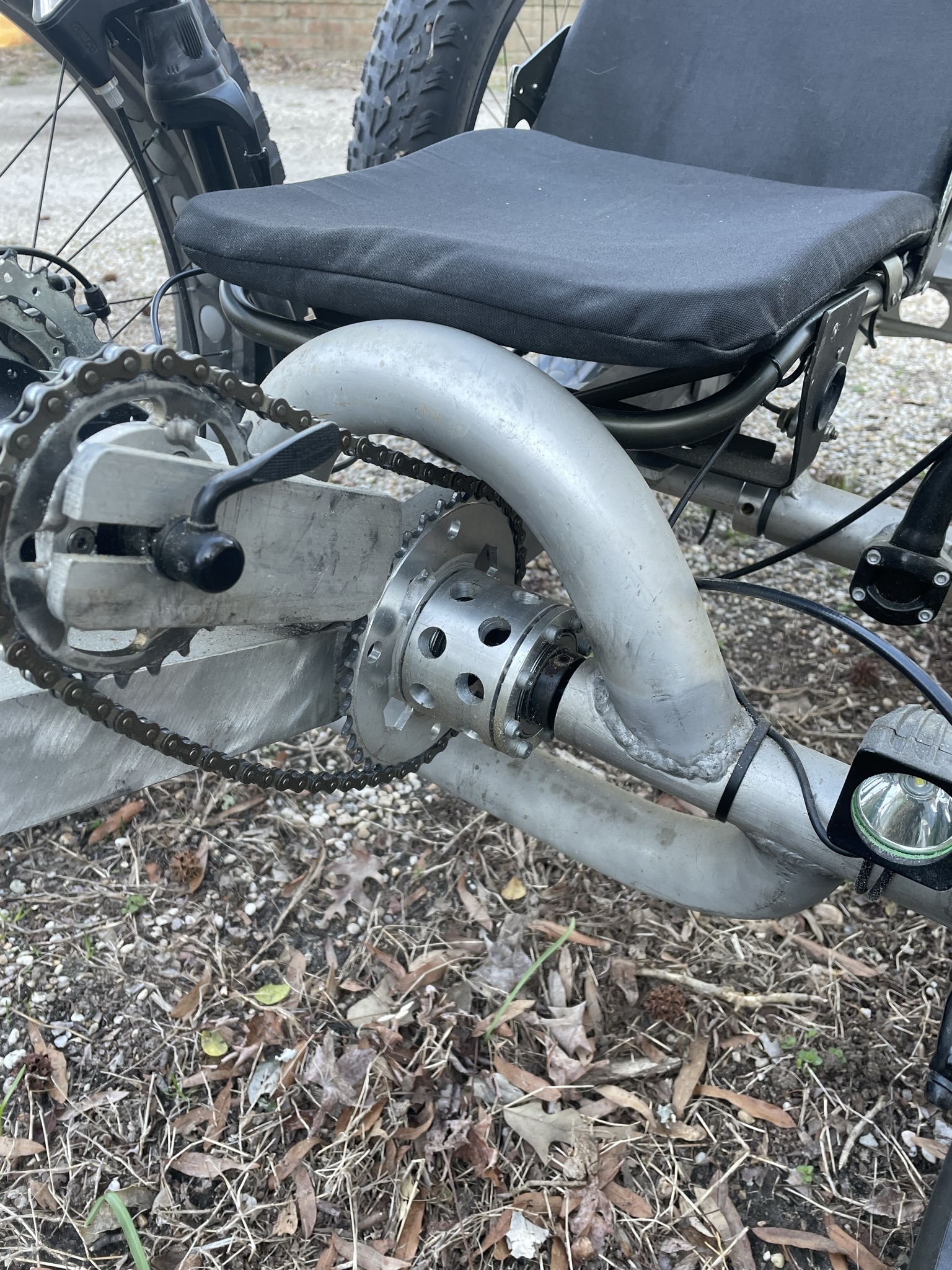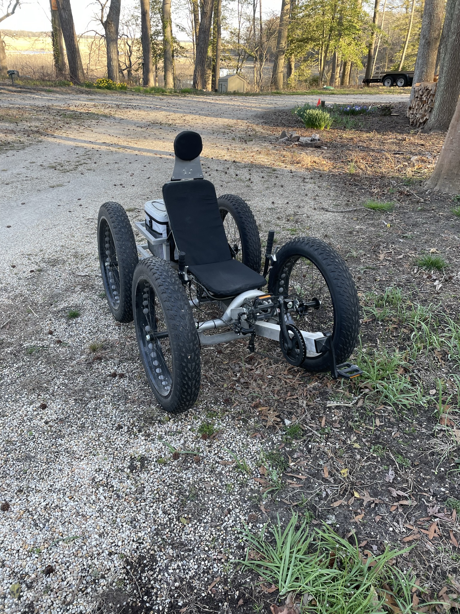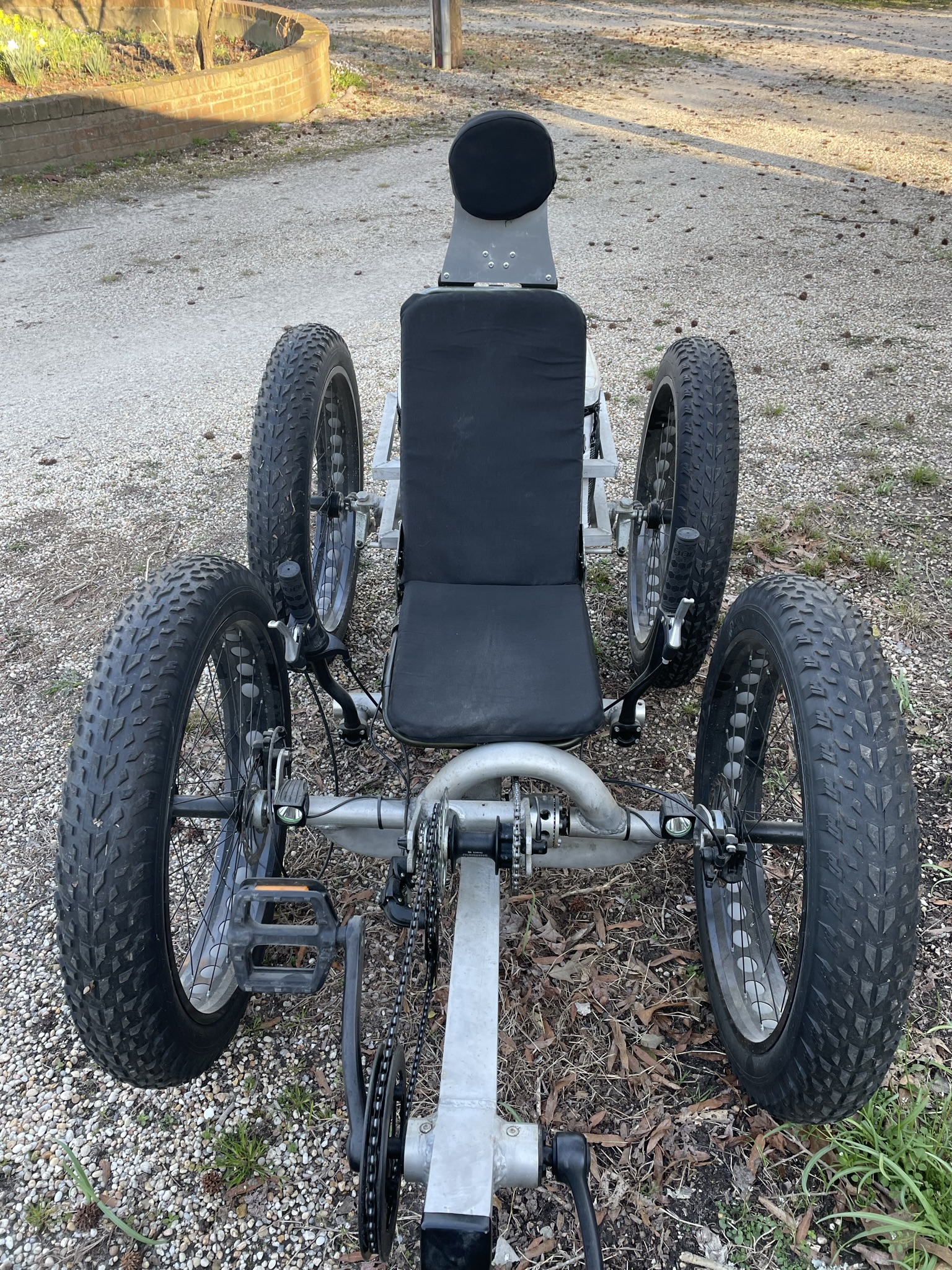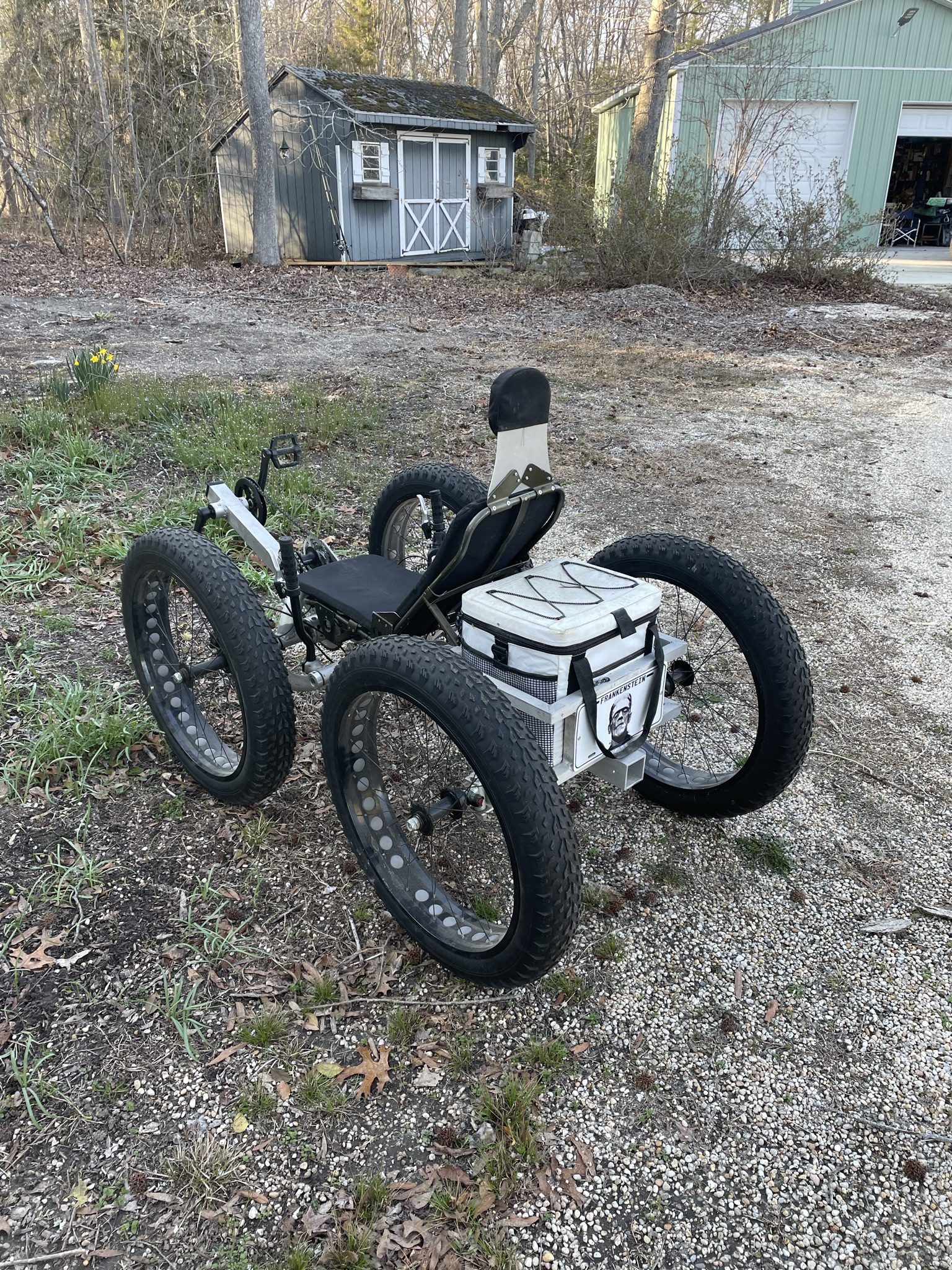 Fat tire 4-wheeler with front wheel drive and rear steering (best for traction through soft sand). I made a differential for the front axle so it’s locked in the soft stuff but open for easy street running. Its got a 7-spd drive and It’s all aluminum with an adjustable surplus aircraft seat and removable cooler rack on the back. Just looking to get back what I have invested in parts…..$1800 obo |