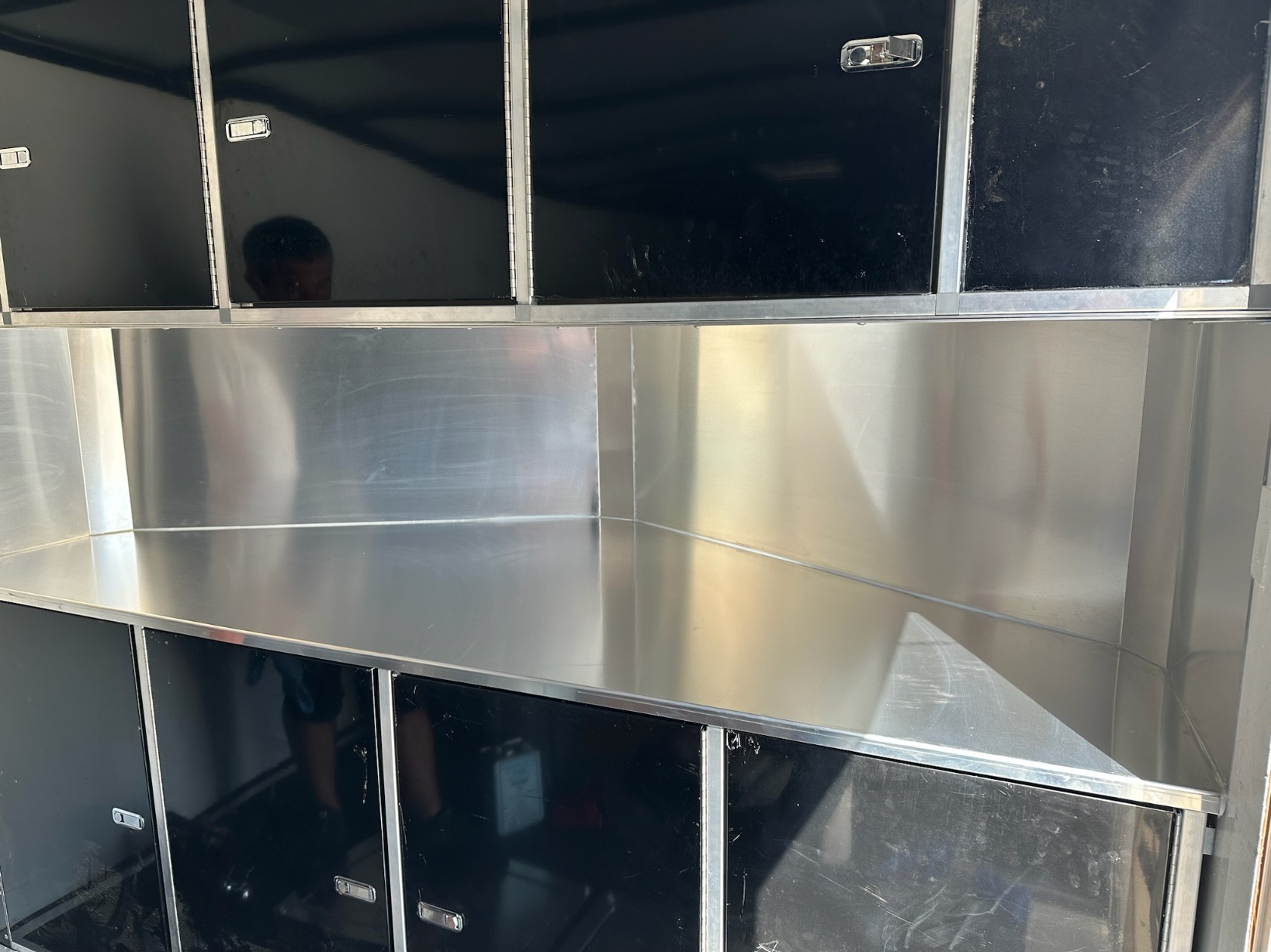 Got the upper cabinet floor installed. 1/4 inch aluminum and it is strong!