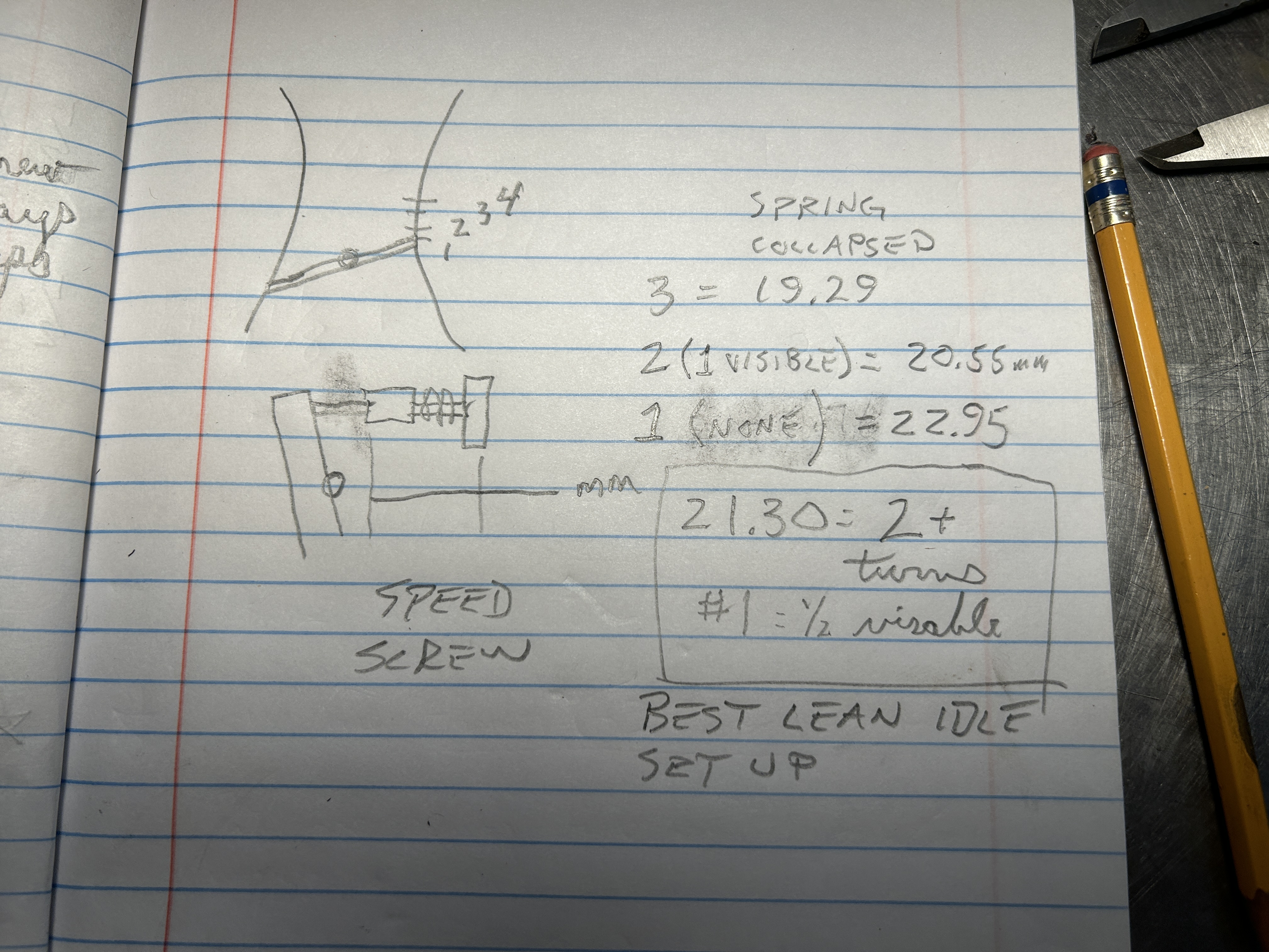 There are 4 zig zag holes and I measured the speed screw all the way til it had fully mashed the spring. so even at the Best Lean Idle preset, the btm hole is partially visible. Bad drawing, but here is an example. |