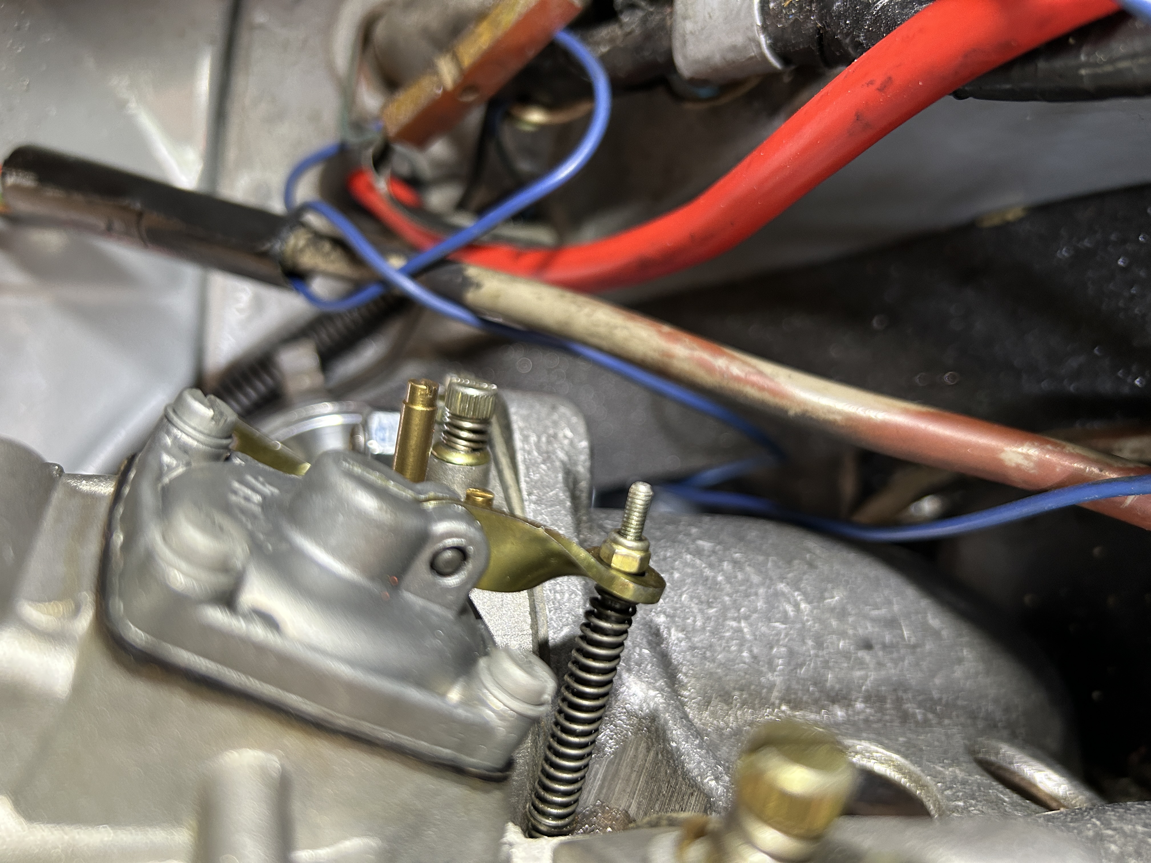 Update: added 1/2 a turn today. Total of 2-1/2 turns in now. Still getting some pops. It was said here that it might take 3 turns to make a difference. Still the plan here? Seems to be about 12 threads showing on each. Is this with the accelerator pumps? If I recall correctly the spec calls for 7mm of threads showing (70 y/o memory) might want to double check Where are your idle mixture adjustment screws? |