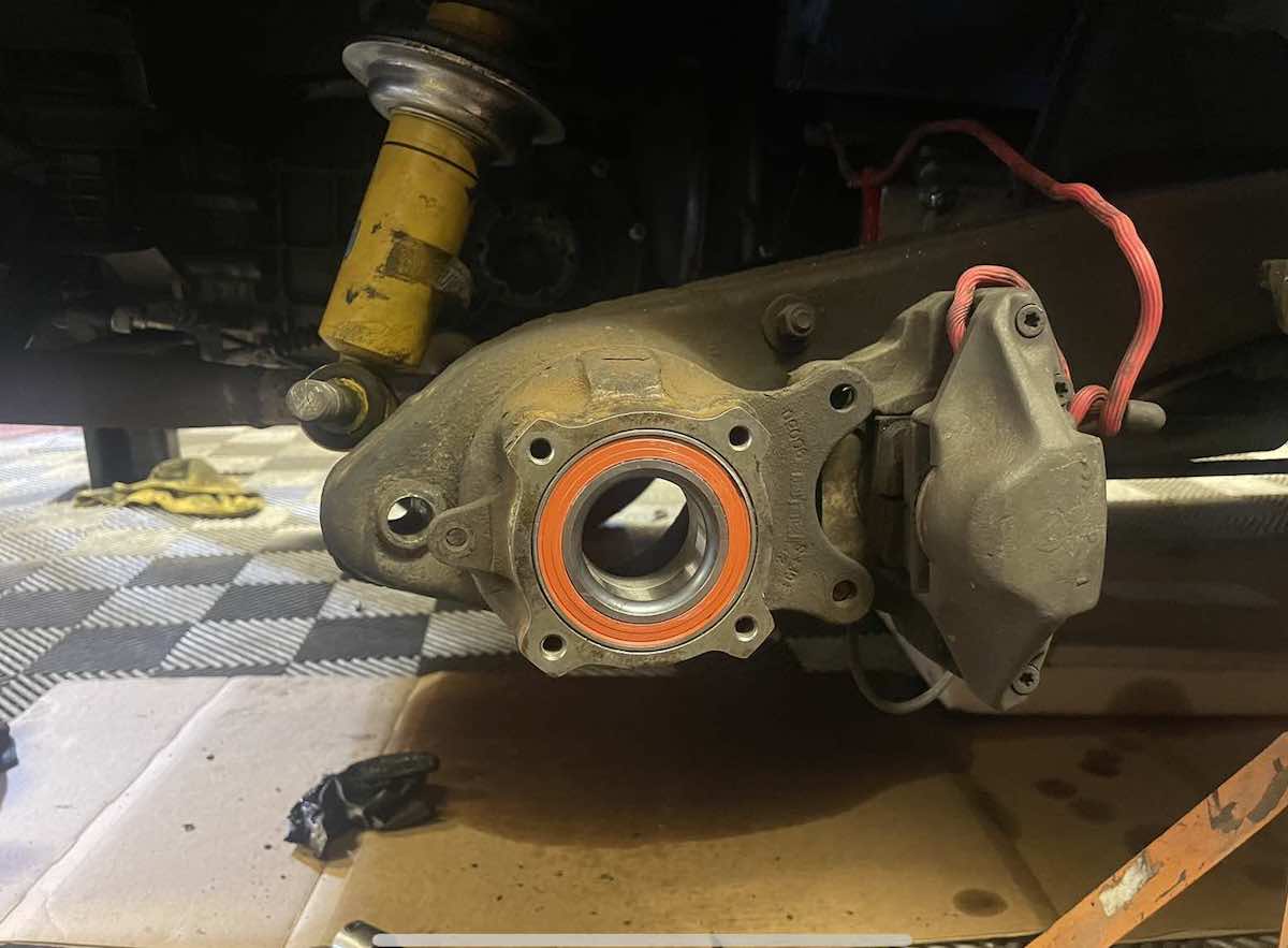 Not sure how I missed this thread until tonight, but a great story! (IMG:style_emoticons/default/popcorn[1].gif) Thanks! Glad you found it. So, when we last left off I had got the LR wheel bearing replaced and everything buttoned up. Since I had so much fun replacing the bearing, I figured I'd continue the fun and tackle the wheel bearing on the RR corner. But I decided to postpone it for a couple of days. When I finally stopped procrastinating I convinced my apprentice to endure a few minutes in the garage and just maybe learn a little something about mechanics. Also busted knuckles and perhaps broken automotive dreams. If you're wondering what the deal is with the straw hat, don't ask me. It somehow arrived on a shelf in the garage years ago only to be found by my son. Some people have thinking caps...I suppose this is his garage hat. As we dug in further it became apparent that this bearing hadn't been touched in a while and clearly needed replacing. I managed to keep my apprentice interest long enough to help remove the bearing retaining plate, then he darted back inside to the comfort of the air conditioning. Check out that filth and grime... Not sure how long this bearing has been in there, but it wouldn't surprise me if it dated back to 1970. After spending a couple of nights nestled between some frozen chicken breasts and what was left of the ice cream sandwiches, I rescued the new bearing from the freezer and popped it into the cleaned-up bearing housing. You'll have to use your imagination to visualize how everything else went back together. Rest assured it all went back together with relative ease. I had to wait until the next day to give the new bearings a maiden voyage. My neighbor pals love to comedically post on Nextdoor about my loud car if I leave after dark, and I didn't want to dare let their potential posts interfere with the latest "is it a coyote, fox or wolf" post from the unofficial Nextdoor neighborhood watch committee. |