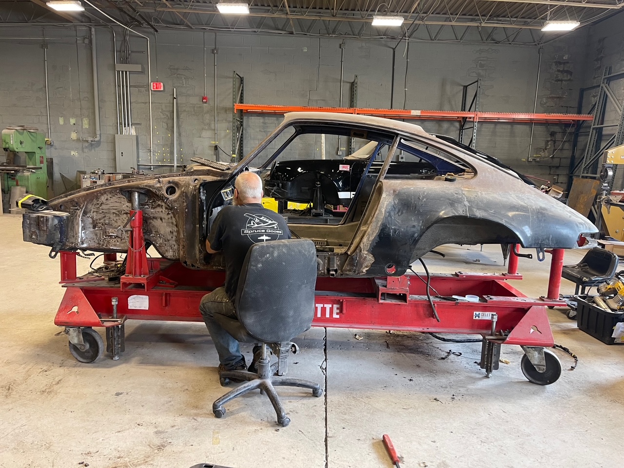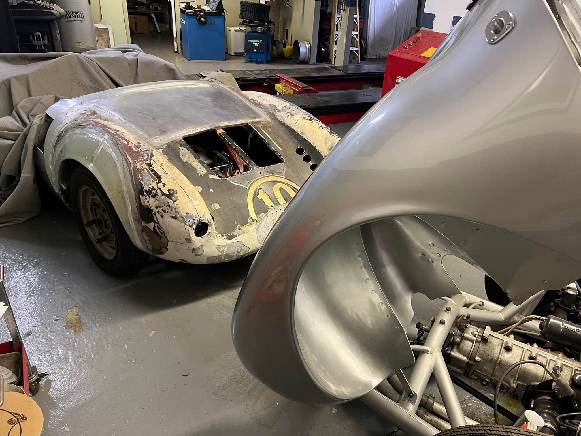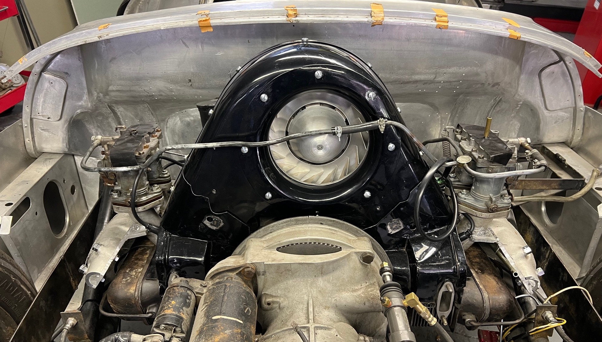 The heart of any great car is its engine. For this build I was lucky enough to coax Vic Skirmants out of engine building retirement to build me a special engine. Combined with Ibrahim's shroud and the magic hands of Bill Haupt the engine was installed in the car today. A momentous day to say the least.