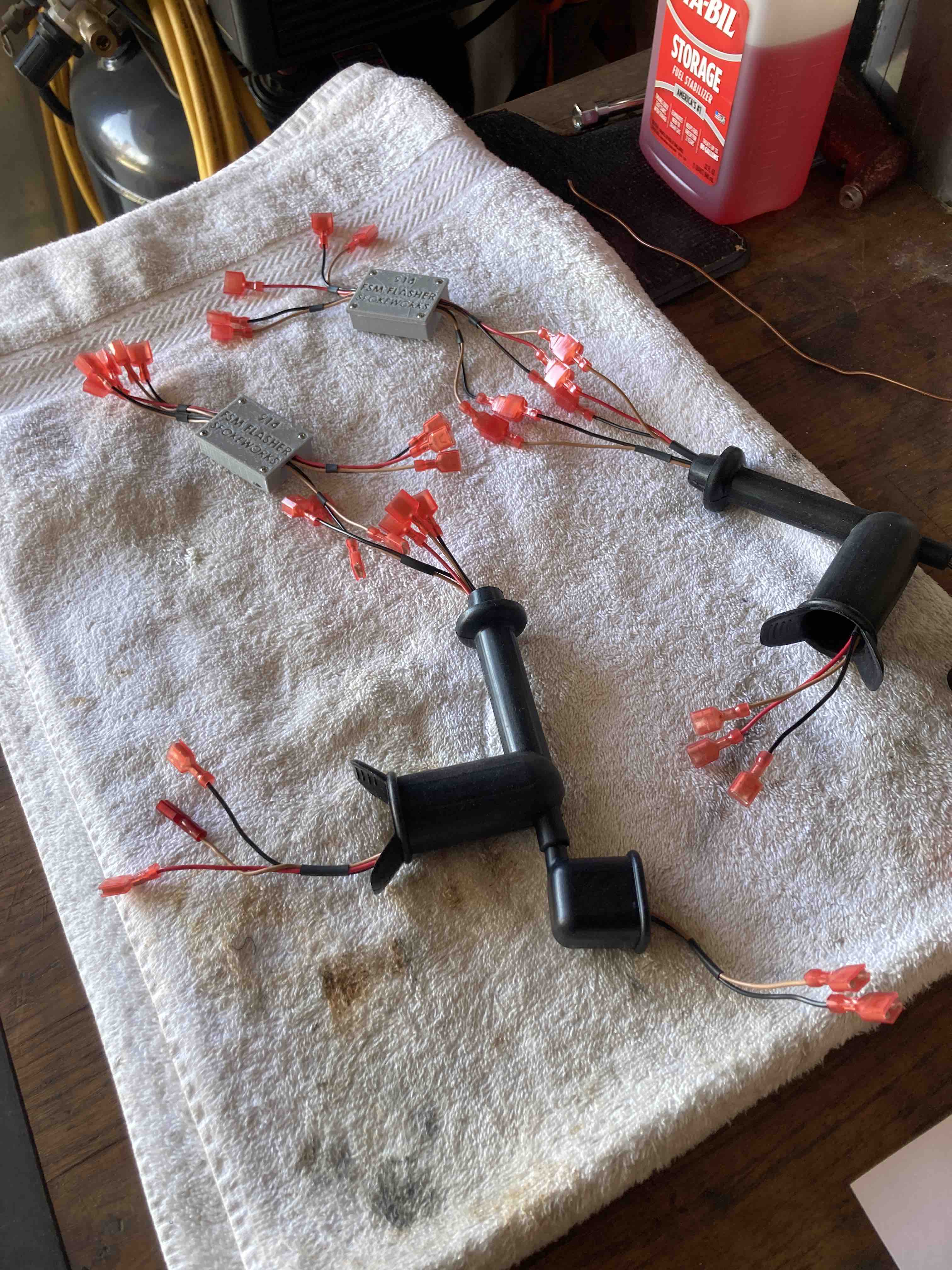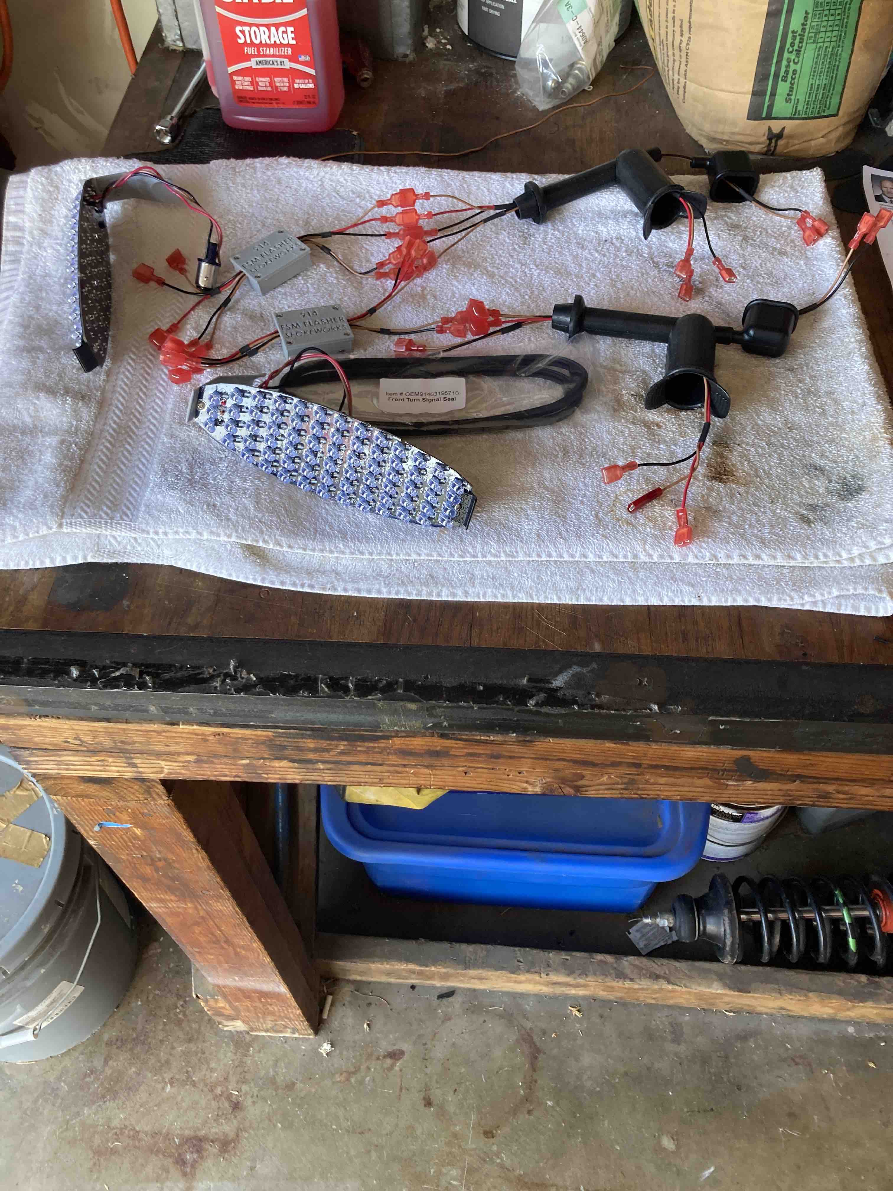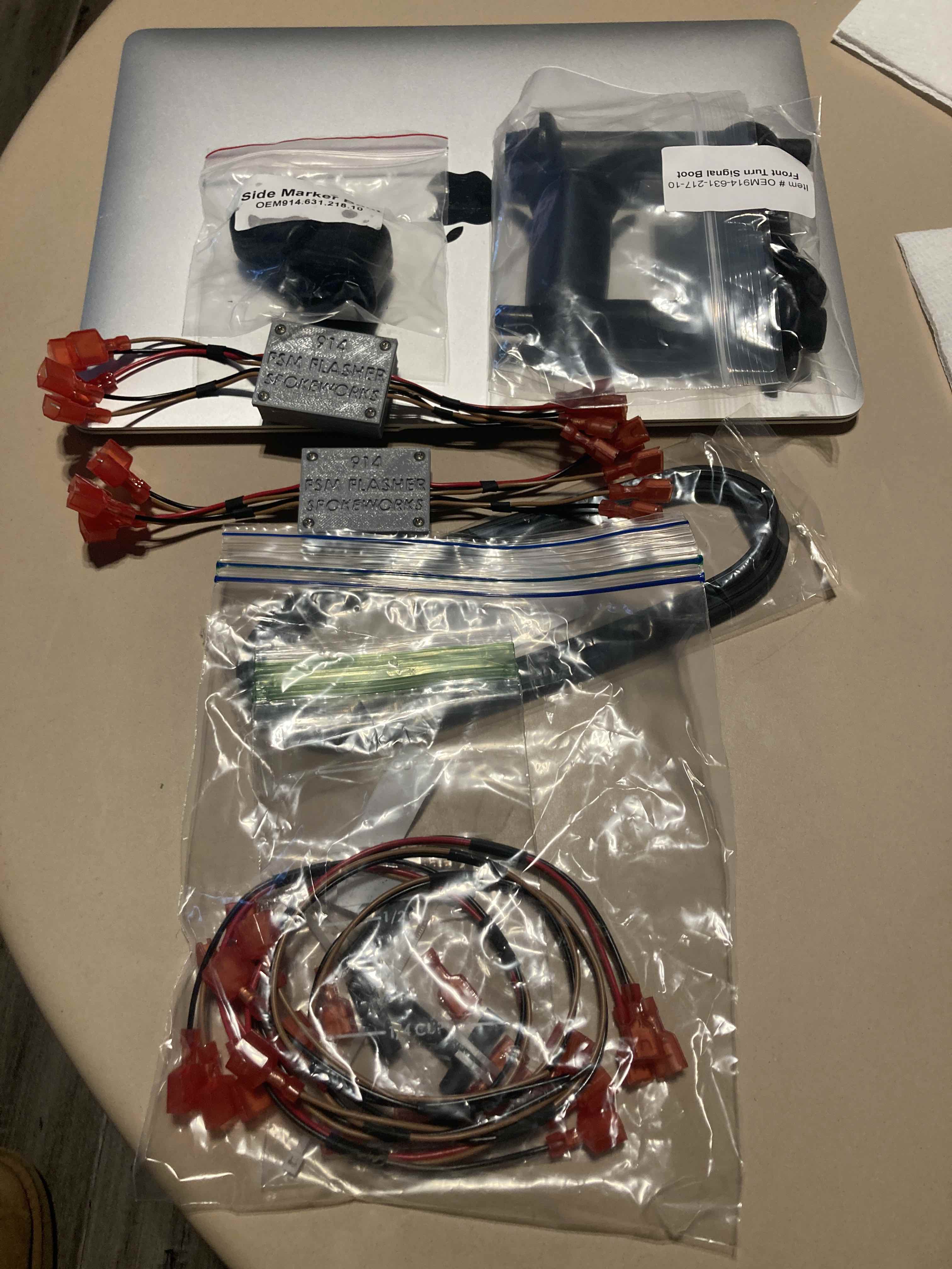 I finally had a chance to start the install of Spoke's turn signal side marker modules that will flash the side markers with the turn signals when activated . I ordered new boots for the turn signals and the side marker lights and a set of Spokes front led turn signals . I also purchased new bucket gaskets . I have pre wired the new boots with the new wiring harnesses and will start the install tomorrow and update this post .