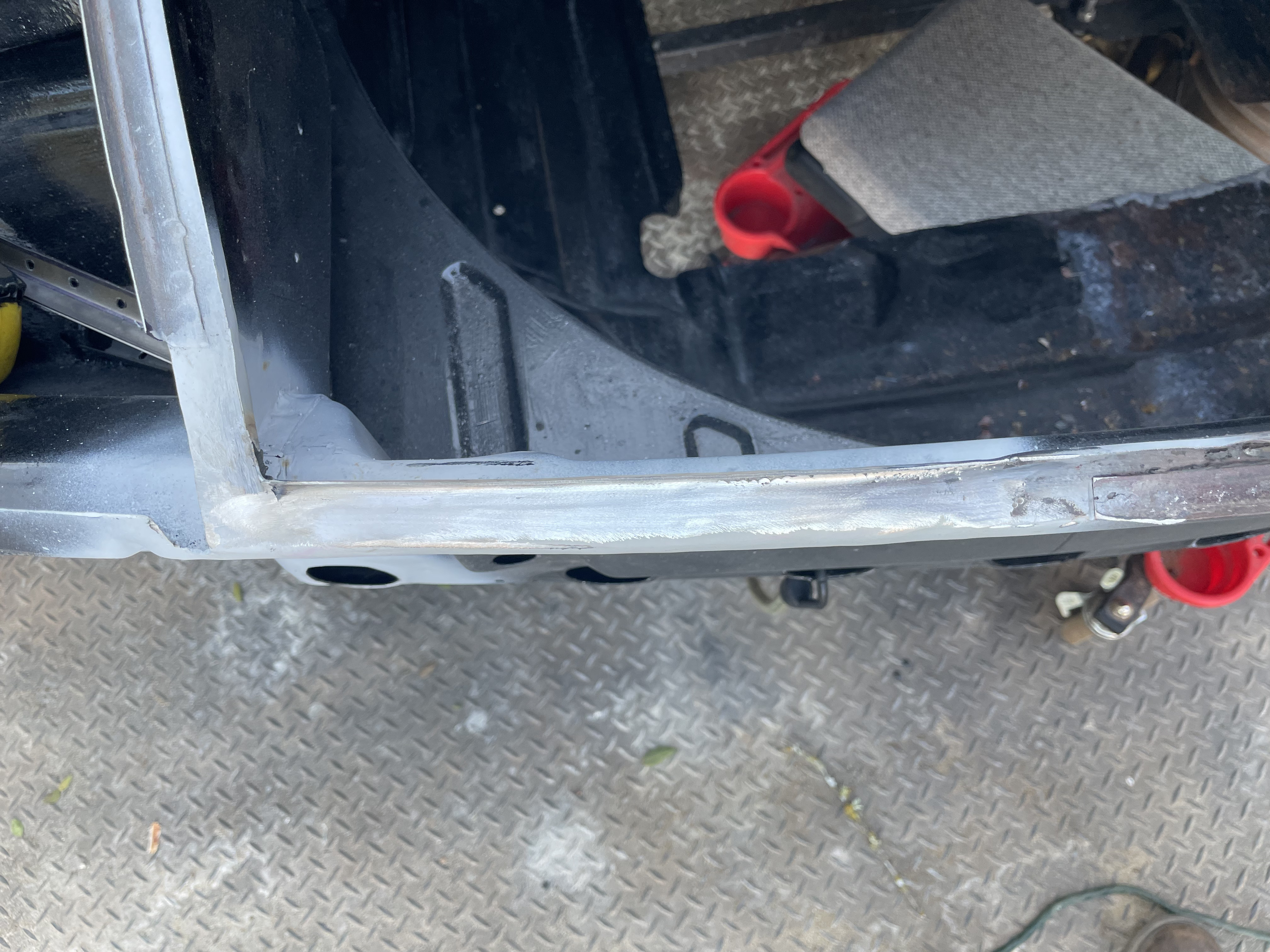 Passenger Light Bucket Area Repair - Part 6 (1/18/2025): Moving on to the last portion of the lower wheel well, you can see the rust damage to section that I removed earlier to gain access to area below the light bucket. Used Rust Bullet to coat the entire area before tacking in the trimmed-up original metal. This work was tricky as it needs to curve around the bottom of the car in this area. ![]() ![]() ![]() Working the bottom edge: You can see that I worked in small patches to try and match the curve the best I could. I have found it's most important to pay attention to the sides and top of these pieces - making sure everything is as flush as it can be. None of this is going to show too much but I trying to do a little bit better than my previous efforts. Might need an English Wheel or something to create these flowing curves with all the other vertical bends/curves that are necessary (IMG:style_emoticons/default/confused24.gif) The following photos show the process of buttoning up this area. ![]() ![]() ![]() ![]() ![]() ![]() ![]() Yay! (IMG:style_emoticons/default/cheer.gif) |
