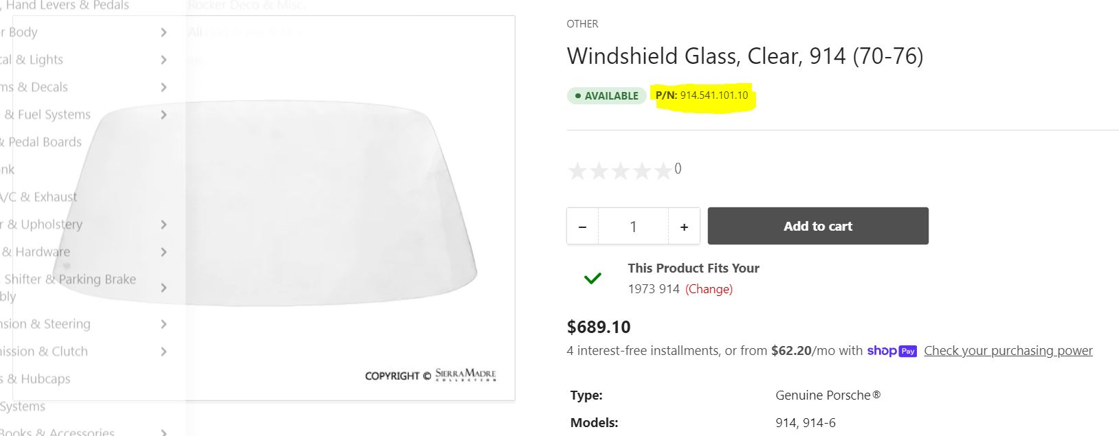 Yes, Pilkington tinted (914-541-102-10) seems to be the one I would be looking for. That being said, I wish there were "bubbled" replicas at lower cost... Not looking for concours here, just happen to prefer how the upper curvature blends nicely in the car's lines. Now, the hunt for the best Porsche price... |