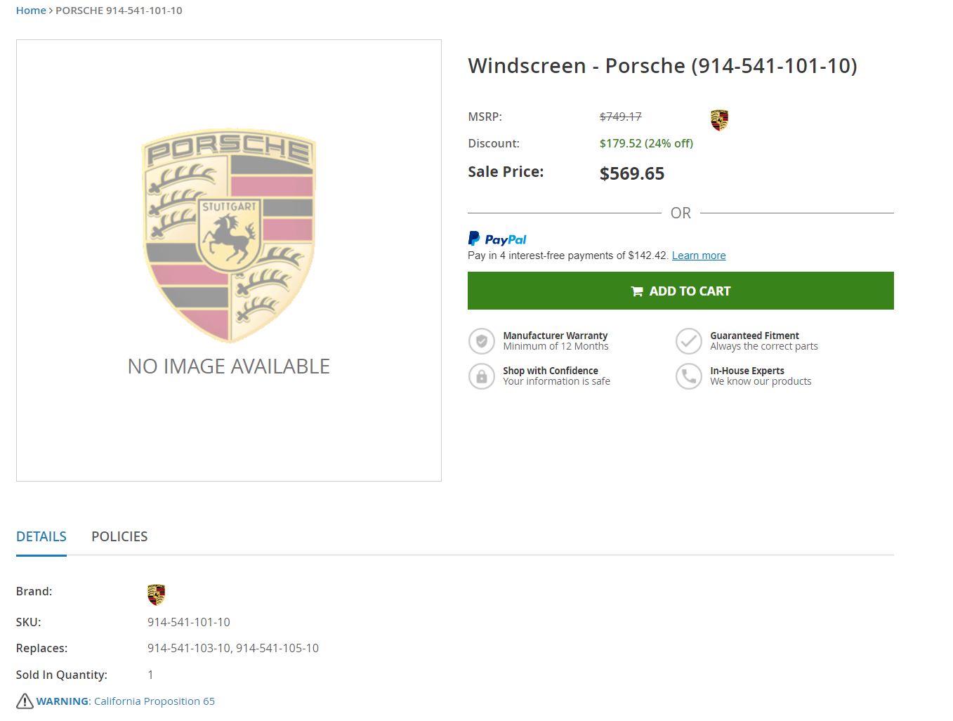 My local Porsche dealer sells parts at a discount (DelawarePorscheParts.com) but will still allow returns without a restocking fee. Windshields can only be sold with in person pickup but maybe check on your local dealer return policy. I’ve purchased a lot of 911 glass but unfortunately have no experience with 914 glass from the dealer.