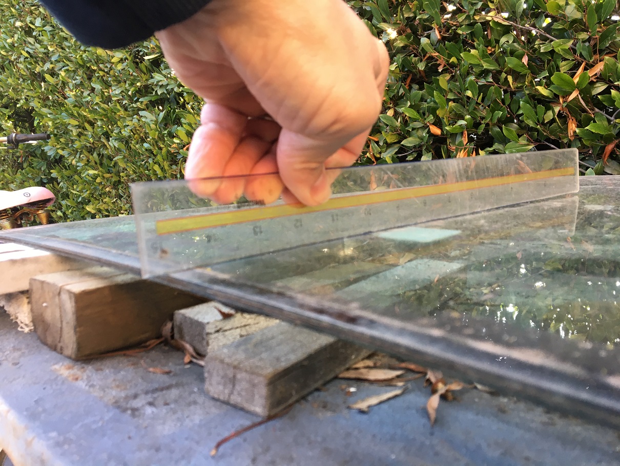 @friethmiller Yes, Fred that is very helpful. Thank you for taking these shots! Seems to have a lot more curvature than my very flat one. (IMG:style_emoticons/default/smile.gif) When you get a chance (zero rush), can you take a last picture with the same paint stick but using its whole length from ~mid height to the top to see how much of a gap there is at the top? This would be a great comparison to my 15" plastic ruler picture of post #26. Happy late TG! Looking forward to read your fast progress! (IMG:style_emoticons/default/smilie_pokal.gif) Sorry if I did this one going the wrong direction but here's the whole stick. Did this after masking the windshield. I think it shows the curvature, though. Hope it helps. ![]() |