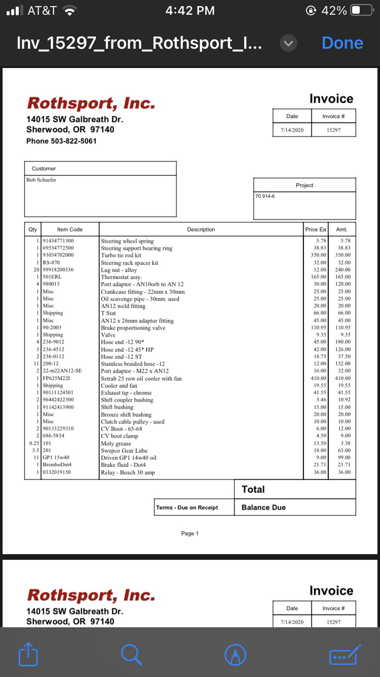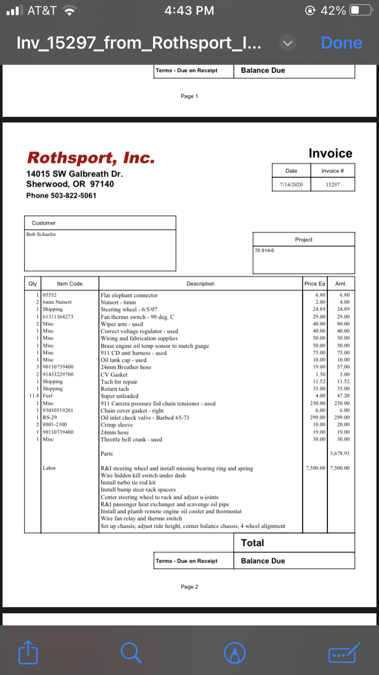 Here’s the resulting invoice I paid for Jeff’s work on the car between 7/1/20 and 10/19/20: