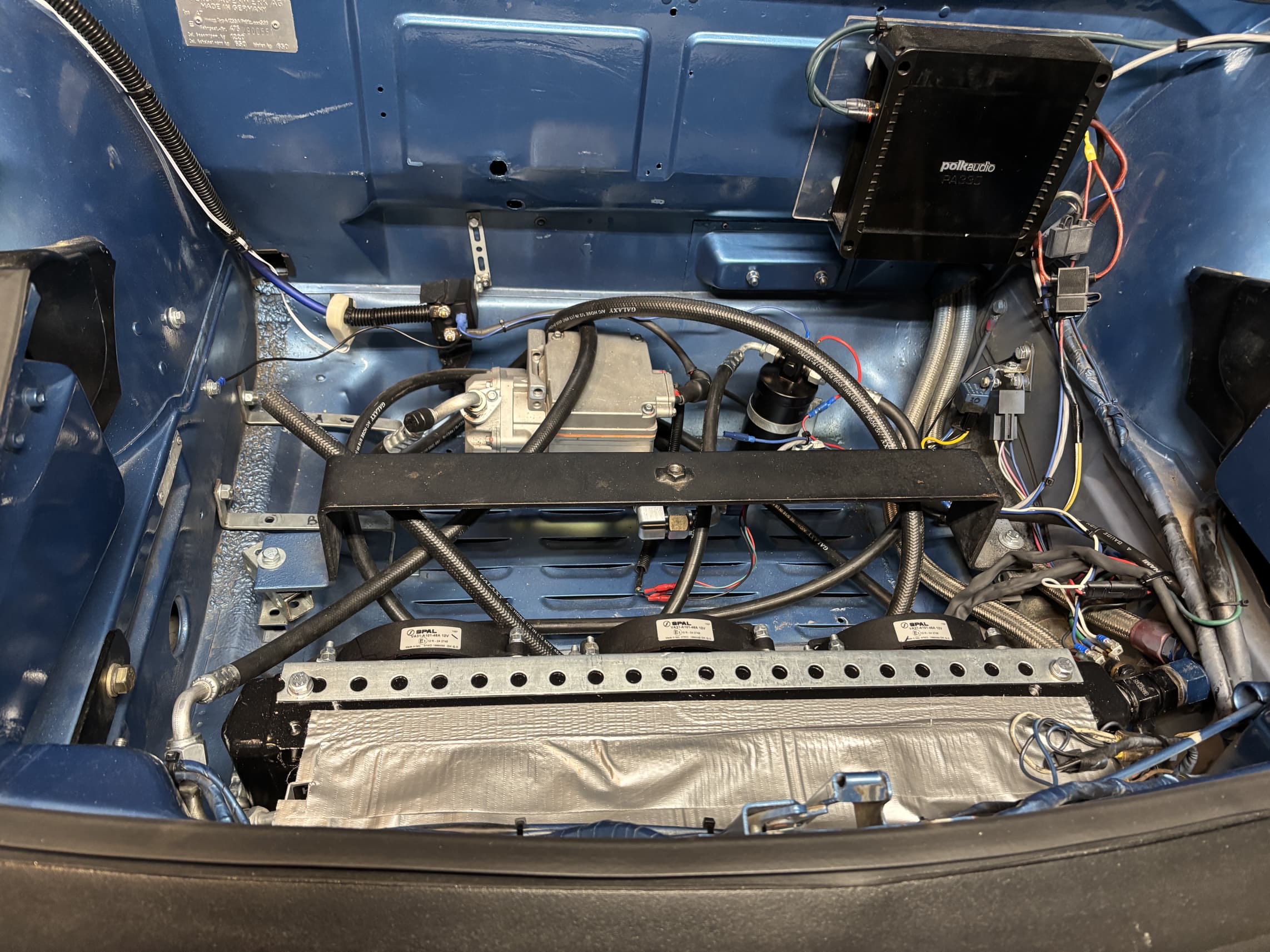 Replaced crappy hot wire to the compressor with 2 AWG wire and replaced the 17” fixse rims with 16” Fuchs. I took this picture at Cars & Coffee in San Clemente last Saturday and used Meta AI to change the background to a virtual Porsche Dealer.