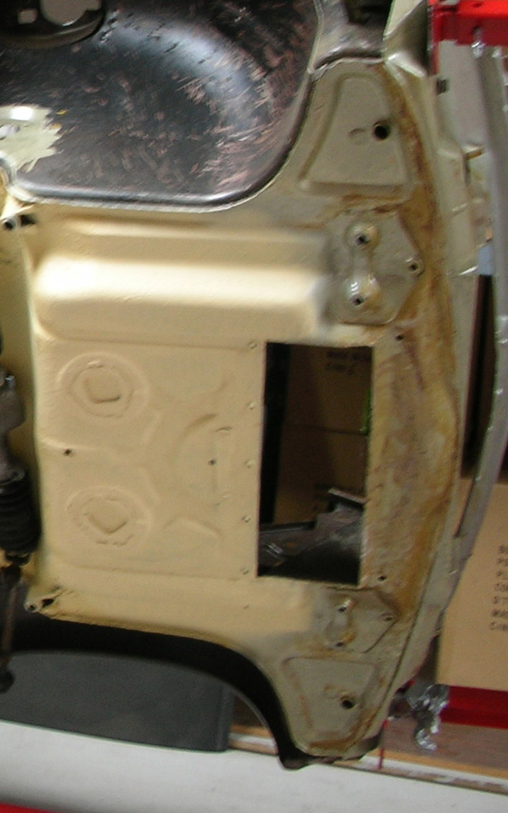 Whomever made up that saying must not have had to drill holes in a car this nice! (IMG:style_emoticons/default/laugh.gif) With the chassis stiffener in there, it took a bit more than expected, but the clearance hole, she is done. Then a quick test fit of the backer to mark where to remove paint (!) so I can do the plug welding. Note that I did narrow up the backer so it'd be easier to get to the fastener that uses that hole to the left. I think it's part of what secures the back pad. Attached thumbnail(s) |