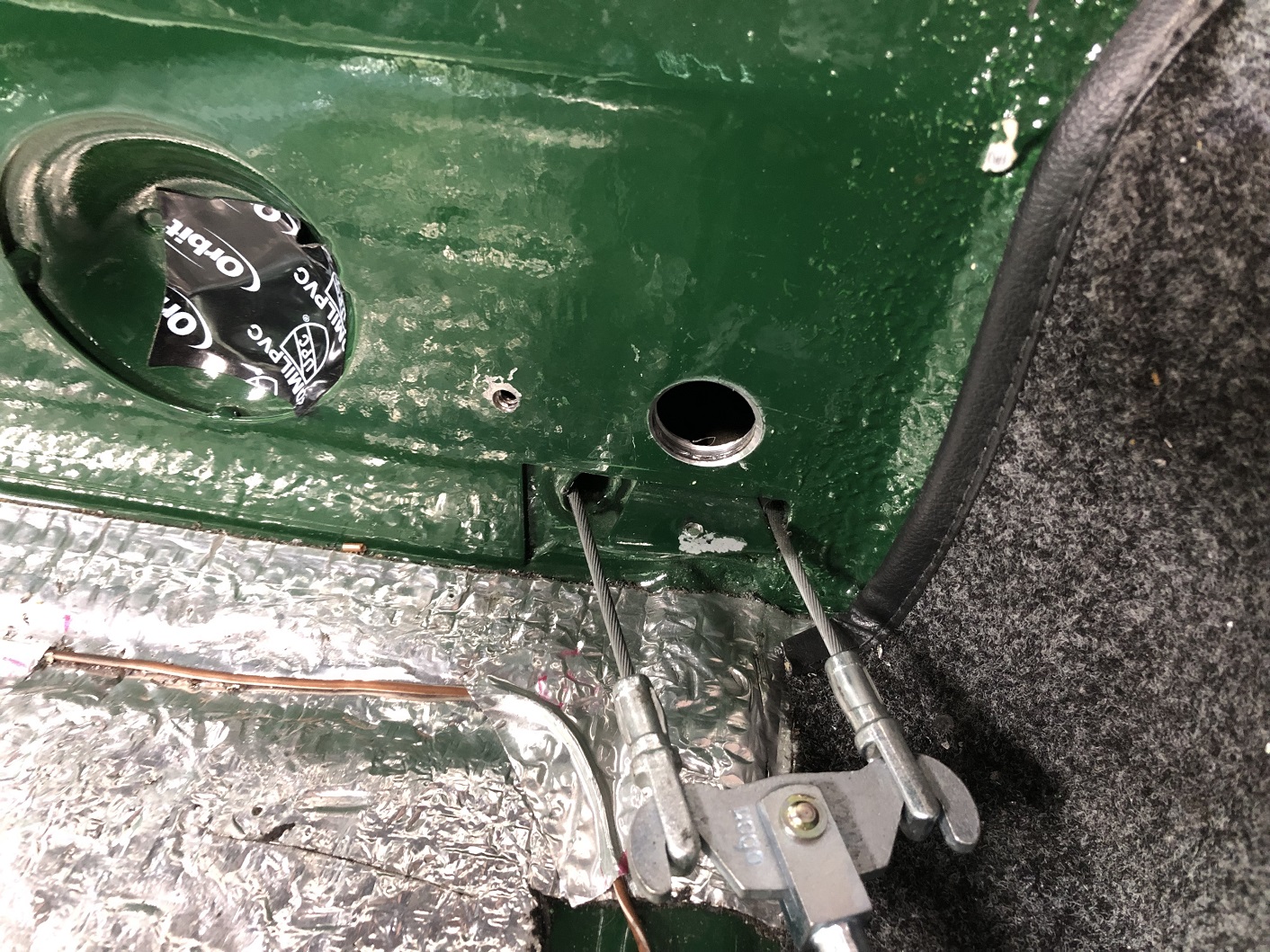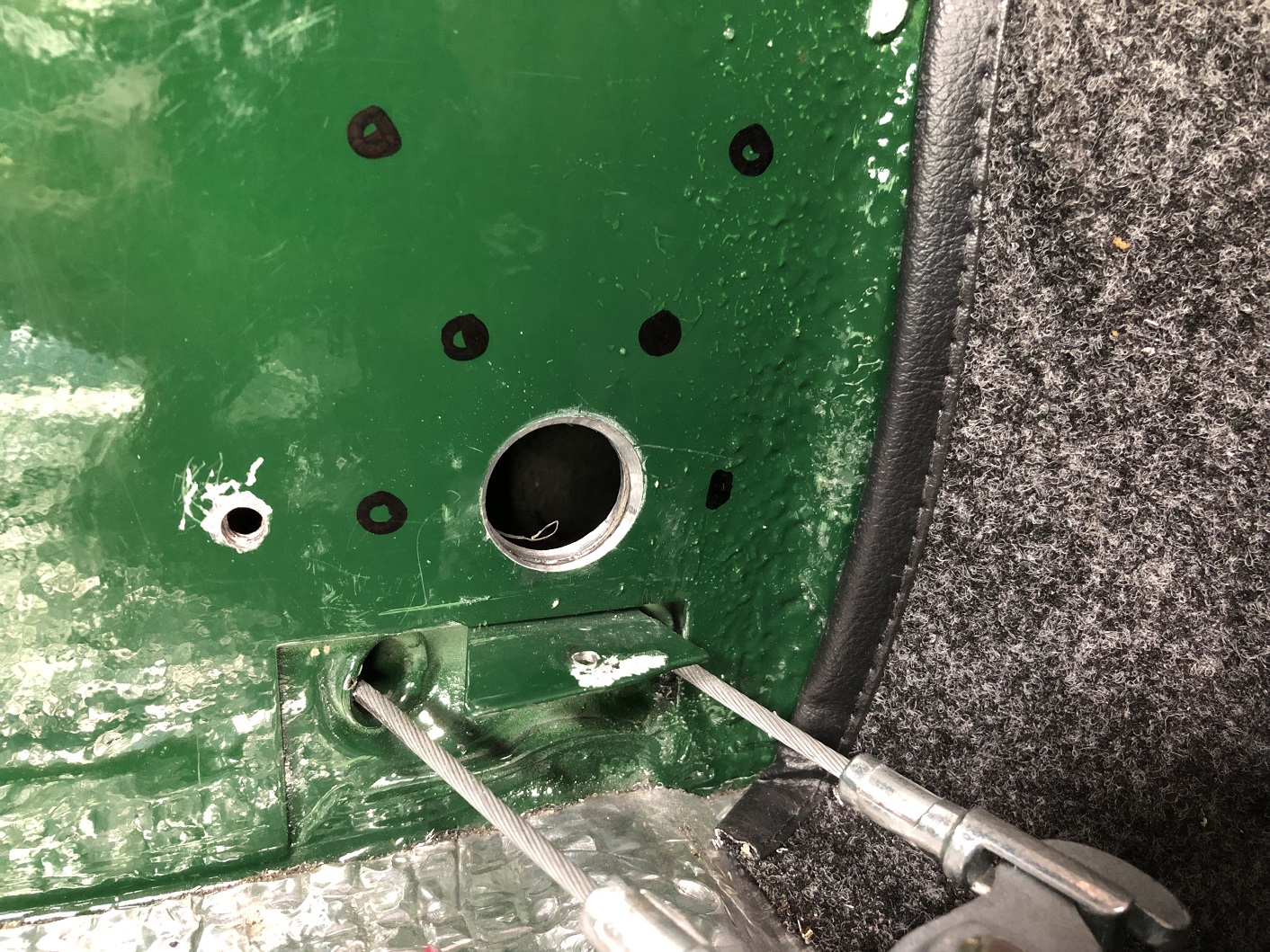 @tygaboy Chris, Taking a shot... and speaking with Greg T., my '71 came with a fixed passenger seat. It has now got the later movable seat. I would say the receiver (female) for the buckle needs to be in that forward hole (where the hole is in the vinyl). They should be directly in line with each other, driver and passenger receiver. (IMG:style_emoticons/default/beerchug.gif) I vaguely remember that there were different lengths of receivers. I wonder if a longer one would be all you need instead of moving the mounting point forward. (IMG:style_emoticons/default/idea.gif) |
