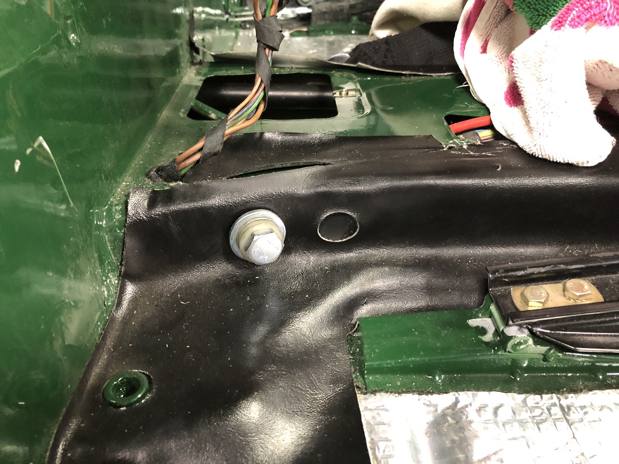 @tygaboy Chris, Taking a shot... and speaking with Greg T., my '71 came with a fixed passenger seat. It has now got the later movable seat. I would say the receiver (female) for the buckle needs to be in that forward hole (where the hole is in the vinyl). They should be directly in line with each other, driver and passenger receiver. (IMG:style_emoticons/default/beerchug.gif)